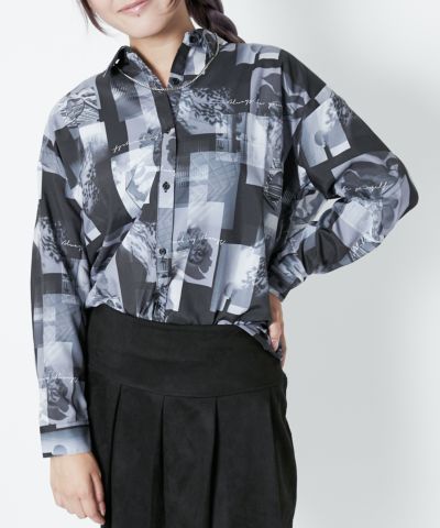 《モノトーンフォトプリント》レディース オーバーサイズ シャツ 長袖 羽織り 春夏秋のレビューを書く