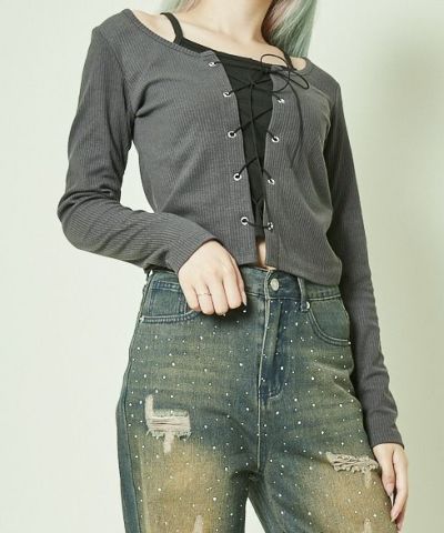 《フェイクレイヤード》レースアップカットトップスのレビューを書く