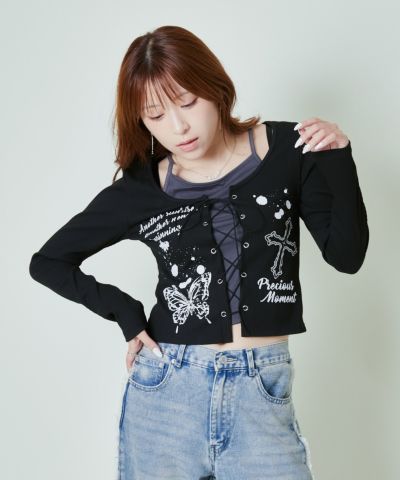 《編み上げ×レイヤード風》Y2Kロゴカットトップス のレビューを書く