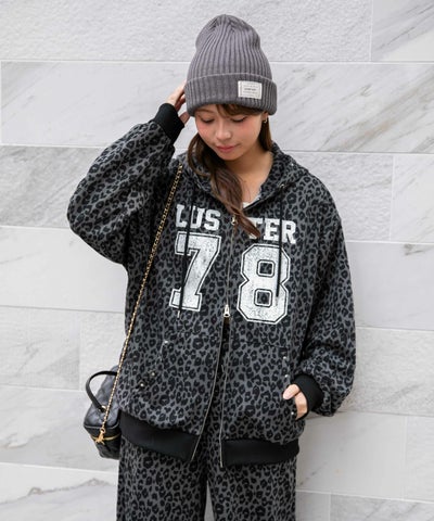 《インパクト柄×スタッズ》レディース 裏毛 スウェットパーカー ナンバリングデザイン セットアップ対応 秋冬のレビューを書く