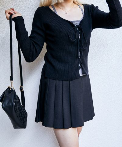 《レースアップ×フェイクレイヤード》レディース リブニット カーデ トップス ドッキング風 春秋冬のレビューを書く