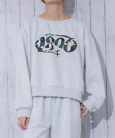 《カモフラロゴ×オフショルゆるシルエット》レディース 裏毛 クルーネックスウェット ラバープリント 春秋冬のレビューを書く