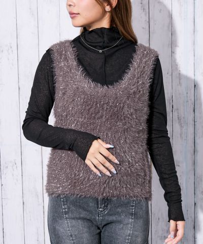 《きらめきフェザー》レディース ラメ ニットベスト トレンド映え 秋冬のレビューを書く