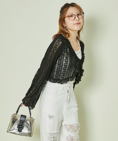 《透け感レース×フレア袖》ショートカーディガンのレビューを書く