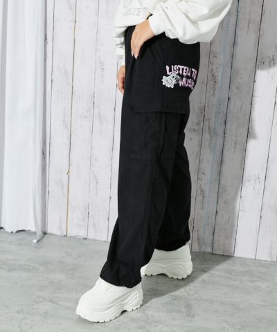 《おばけ刺繍×カーゴ》レディース カルゼパンツ ウエストゴム ワイドシルエット 秋冬春のレビューを書く