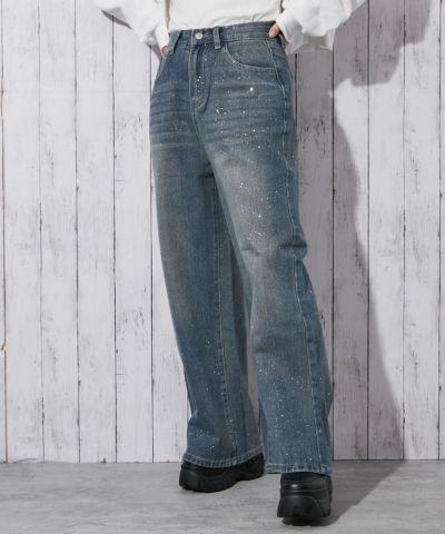 《ラメ飛ばしデニム》レディース ストレートパンツ ノンストレッチ クール見え 秋冬のレビューを書く