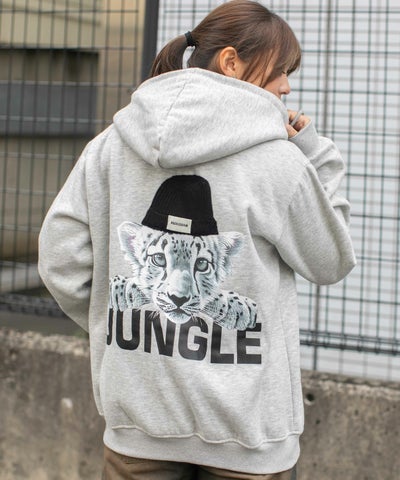 《バックトラプリント×ニット帽付き》レディース 裏起毛 ジップパーカー オーバーサイズ 秋冬のレビューを書く