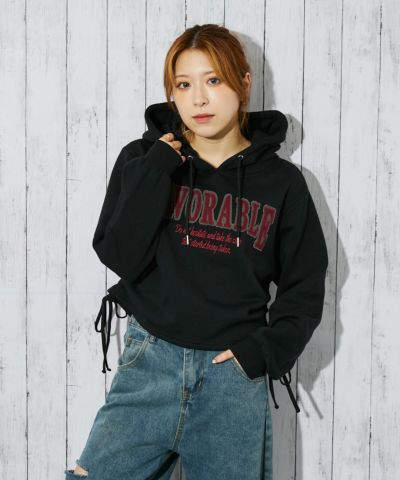 《サイドドロスト×カレッジロゴ》レディース 裏起毛 パーカー クロップド丈 ストリート 秋冬のレビューを書く