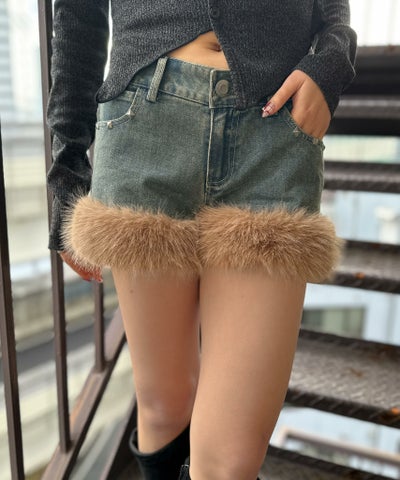 《裾ファー付き×デニム素材》デニムショートパンツ/秋冬Y2Kのレビューを書く