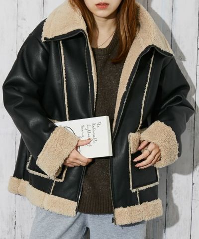 《ボア切替×ビッグカラー》レディース フェイクムートンジャケット ゆるシルエット 秋冬のレビューを書く