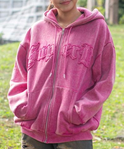 《ケミカルウォッシュ×立体ロゴ》レディース 裏起毛 ジップパーカー オーバーサイズ 秋冬のレビューを書く