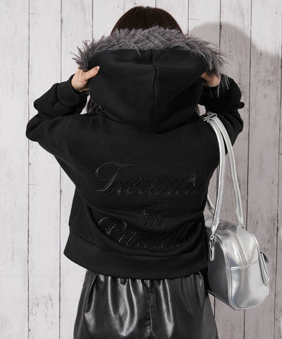 《フェイクファーフード×ロゴ刺繍》レディース 裏起毛 プルパーカー クロップド丈 スウェット 秋冬のレビューを書く