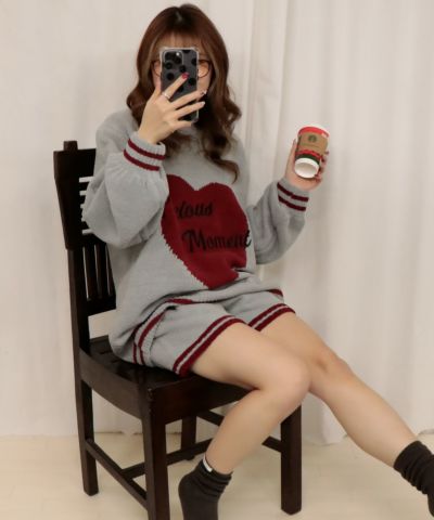 《ふわモコ編地×ライン配色》リラックスニットショートパンツ/秋冬・ルームウェア◎のレビューを書く