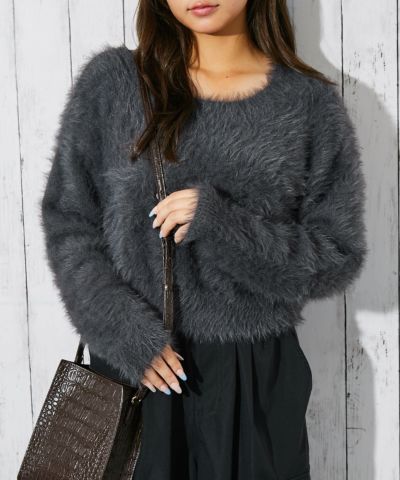 《フェザー×ショート丈》レディース ニットプルオーバー 長袖のレビューを書く