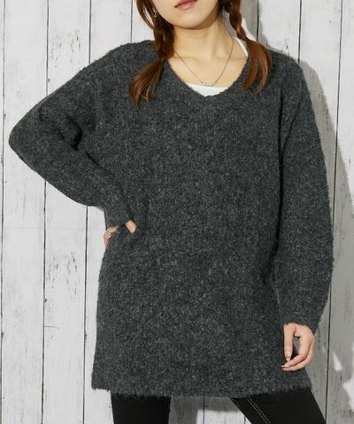 《バックリボン×ブークレ》レディース チュニックニット ふんわり長丈 秋冬のレビューを書く