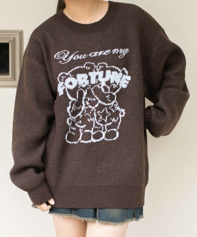 《くまジャカード×ロゴデザイン》レディース ニットプルオーバー カジュアルキュート 秋冬のレビューを書く