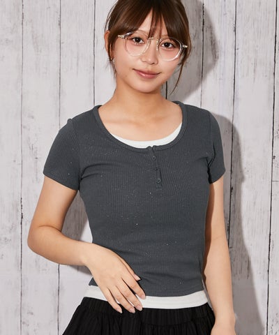 《ラメテレコ×フェイクレイヤード》テレコカットソー/Y2K/春夏秋/全3色のレビューを書く