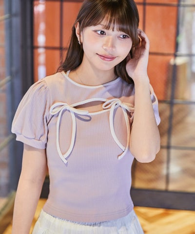 《リボンデザイン×肌見せ》カットソー/Y2K×フェミニン/春夏/全3色のレビューを書く