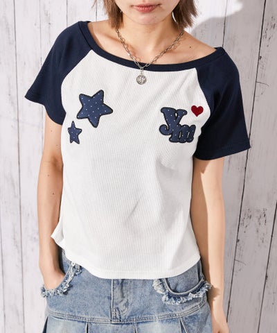 《ワッペンデザイン》短丈配色ラグランTシャツ/Y2K/春夏/全3色のレビューを書く