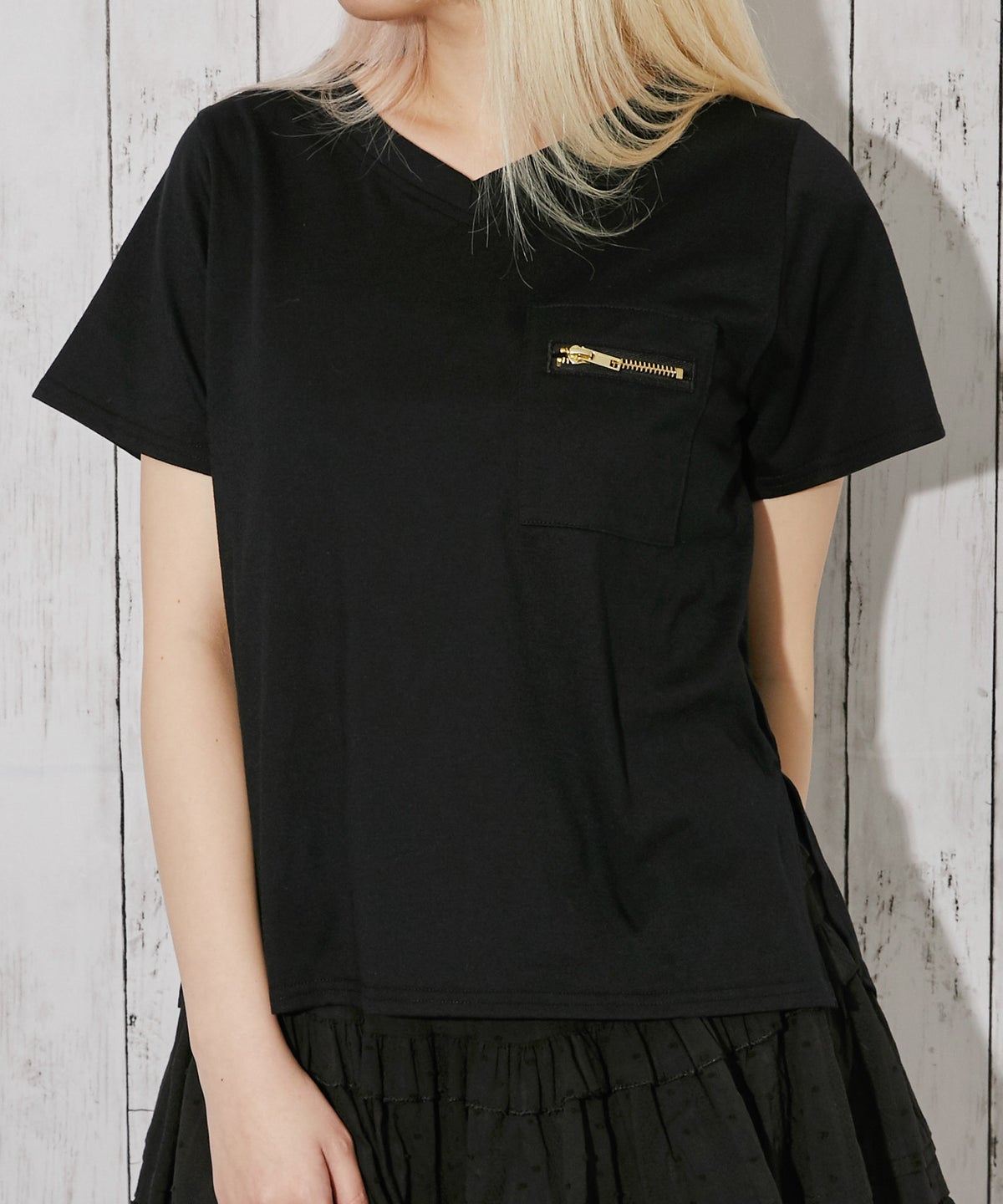 《デニム衿ZIPトップス》カットソー/カジュアル/Y2K/春夏秋/全3色