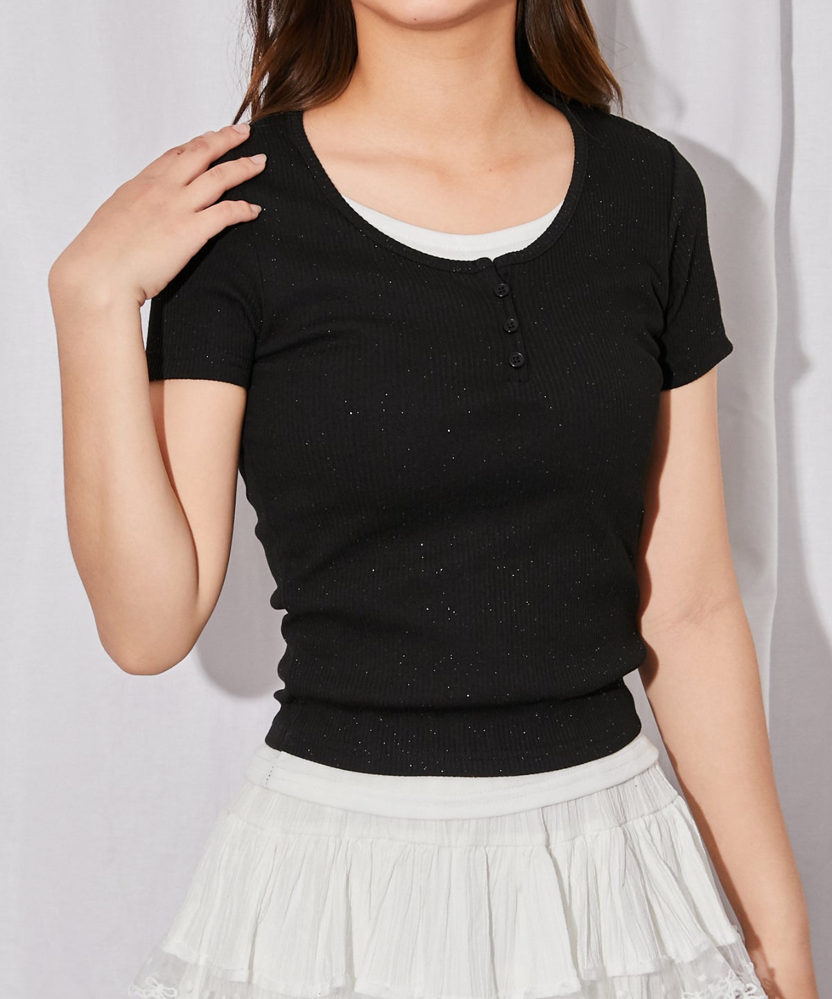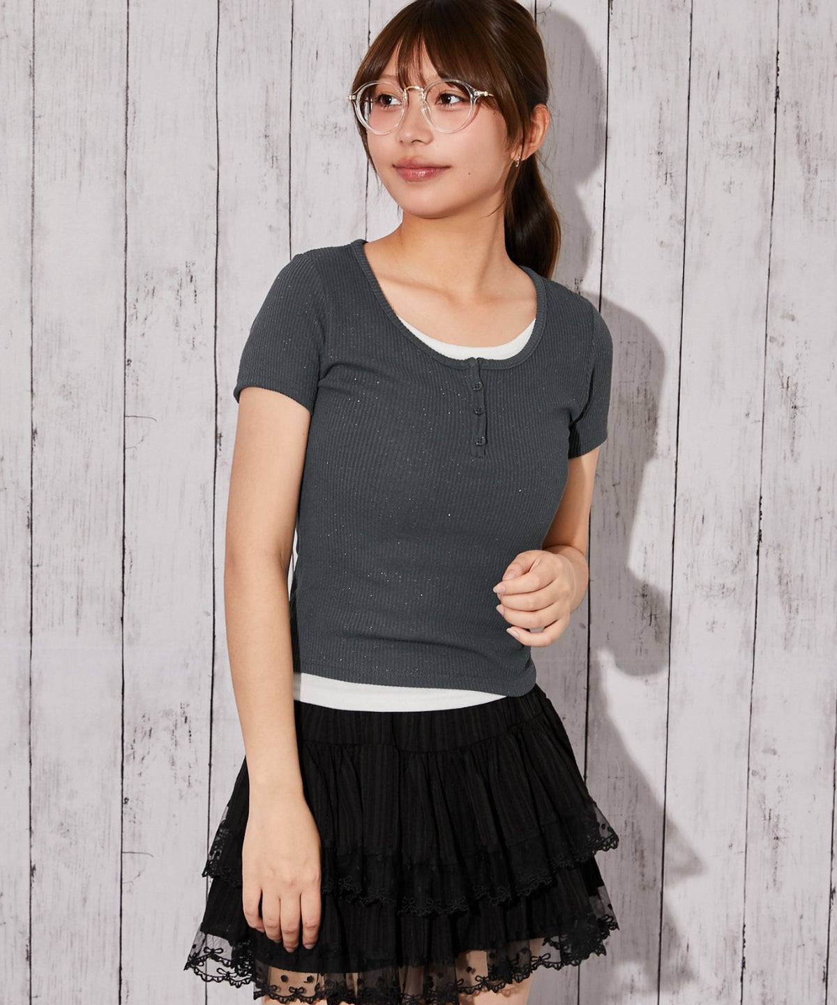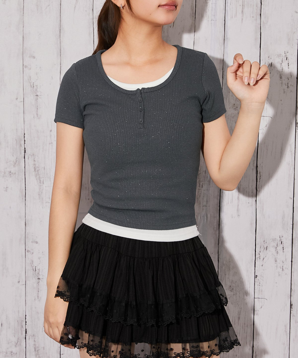 《ラメテレコ×フェイクレイヤード》テレコカットソー/Y2K/春夏秋/全3色