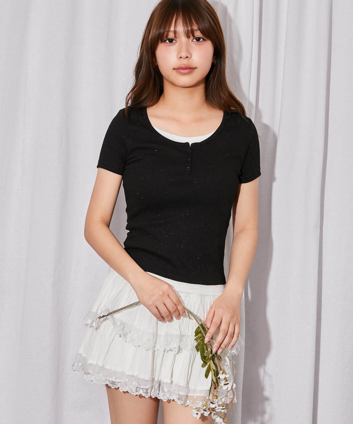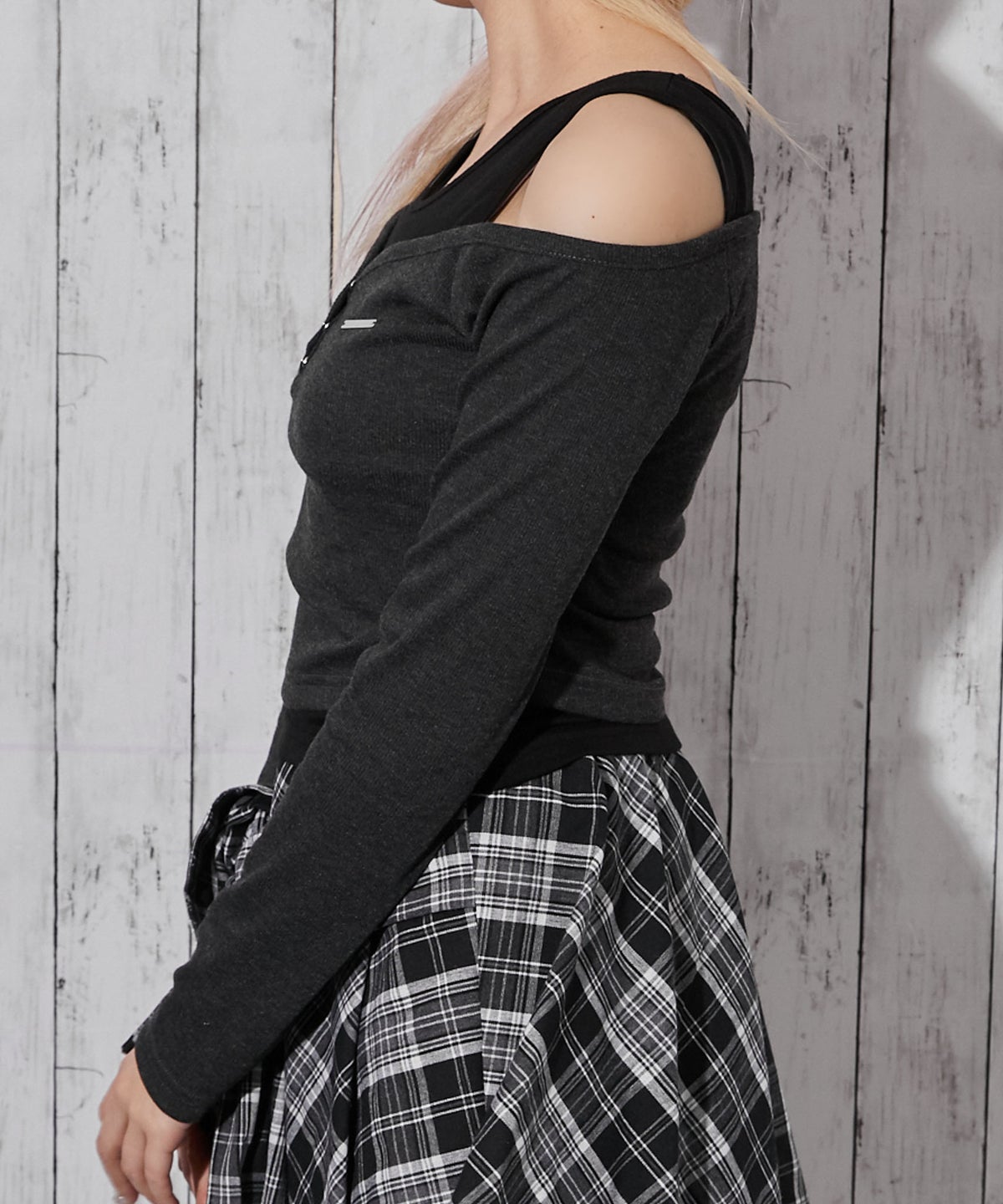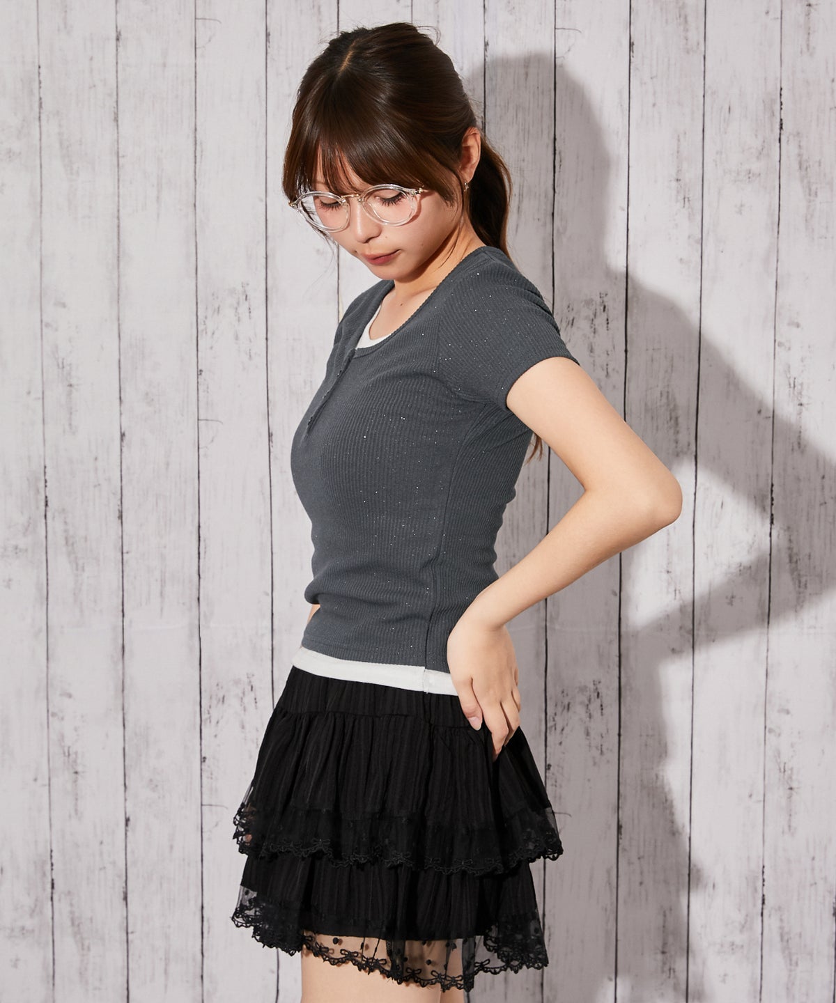 《ラメテレコ×フェイクレイヤード》テレコカットソー/Y2K/春夏秋/全3色