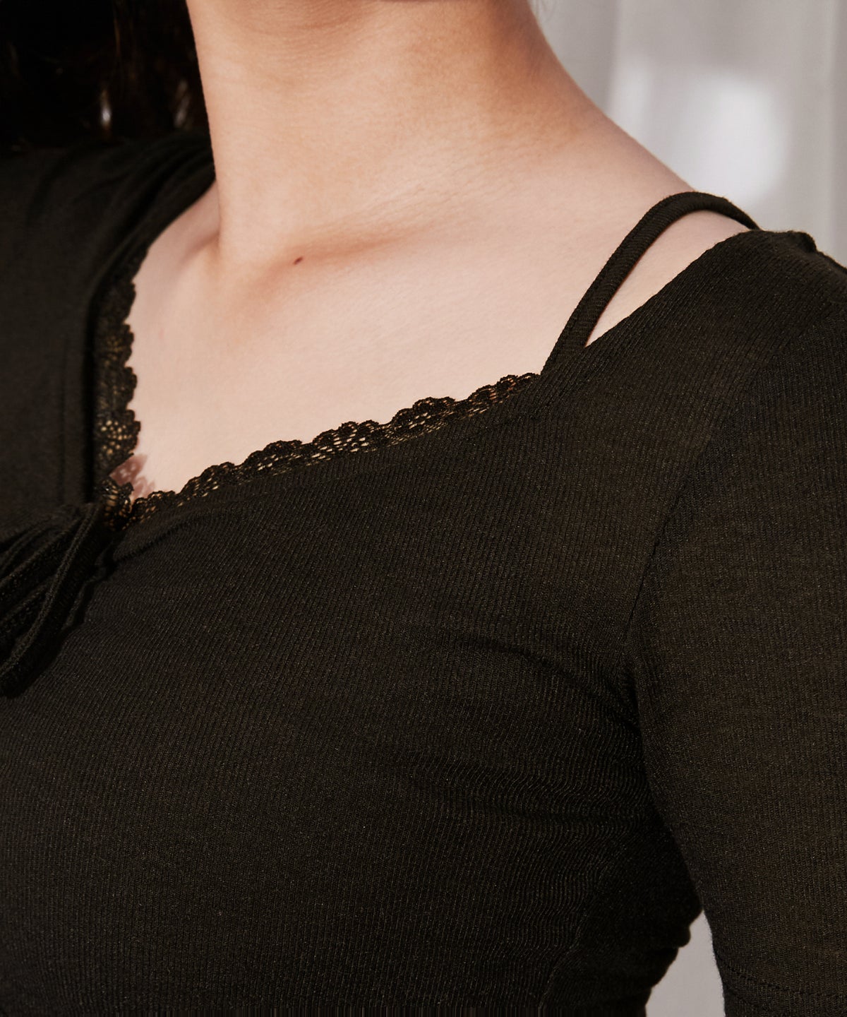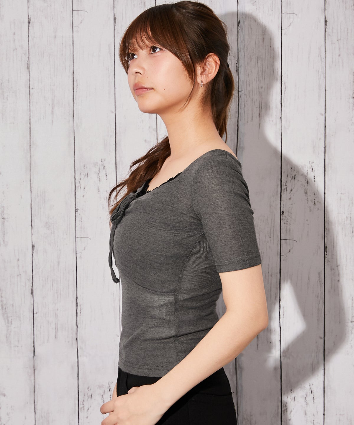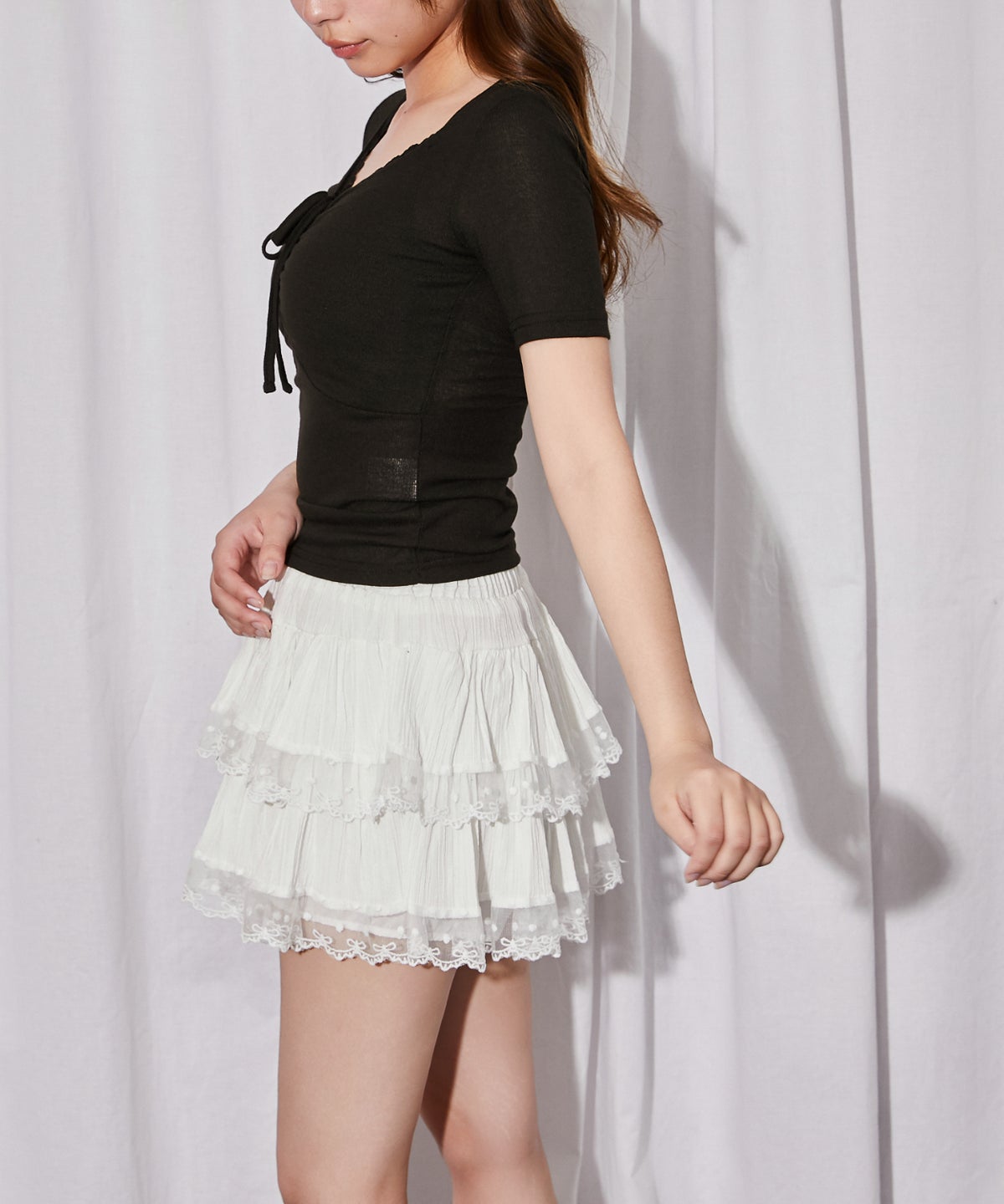 《フロントギャザー×レースレイヤード》カットソー/Y2K/フェミニン/春夏/全3色