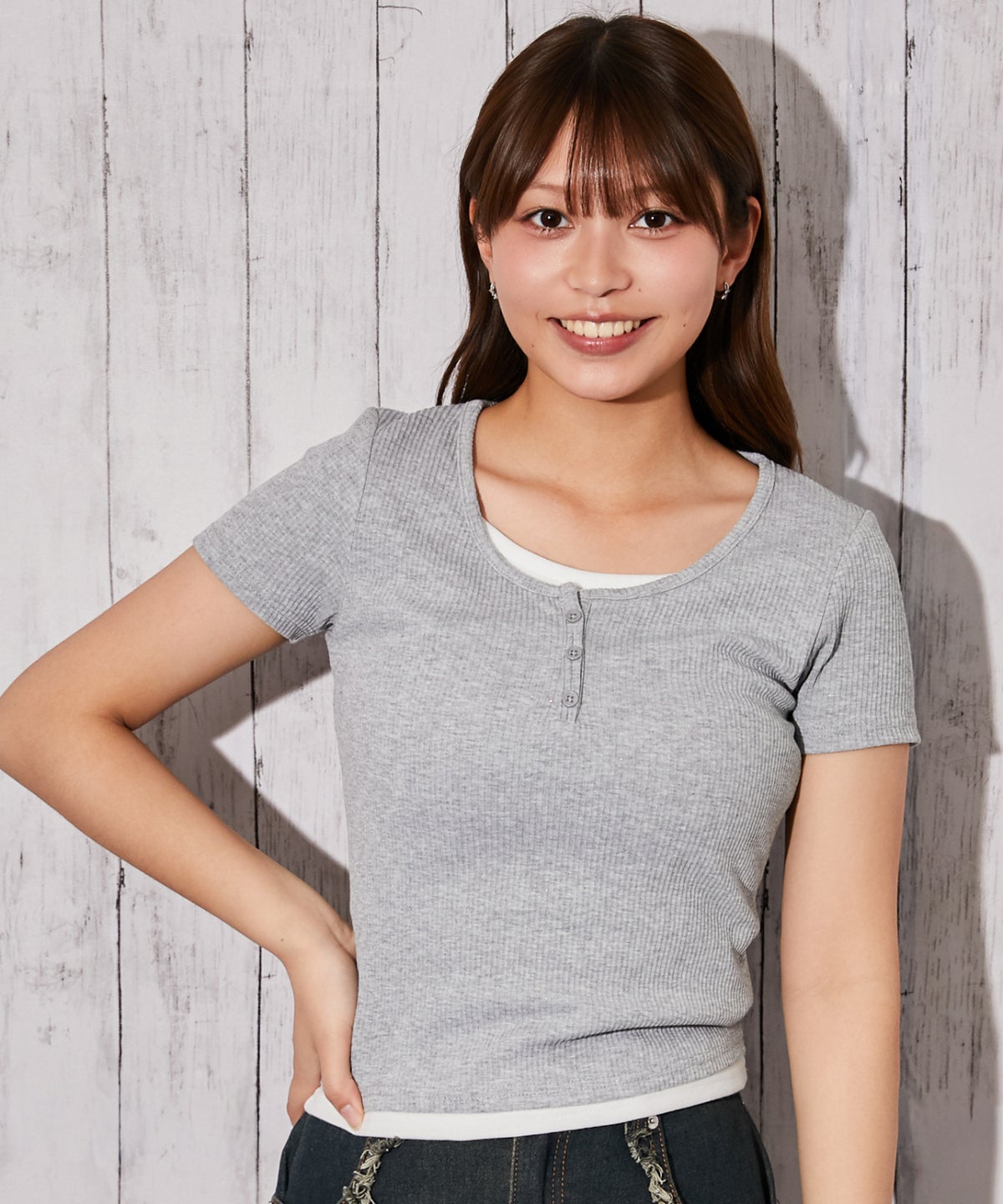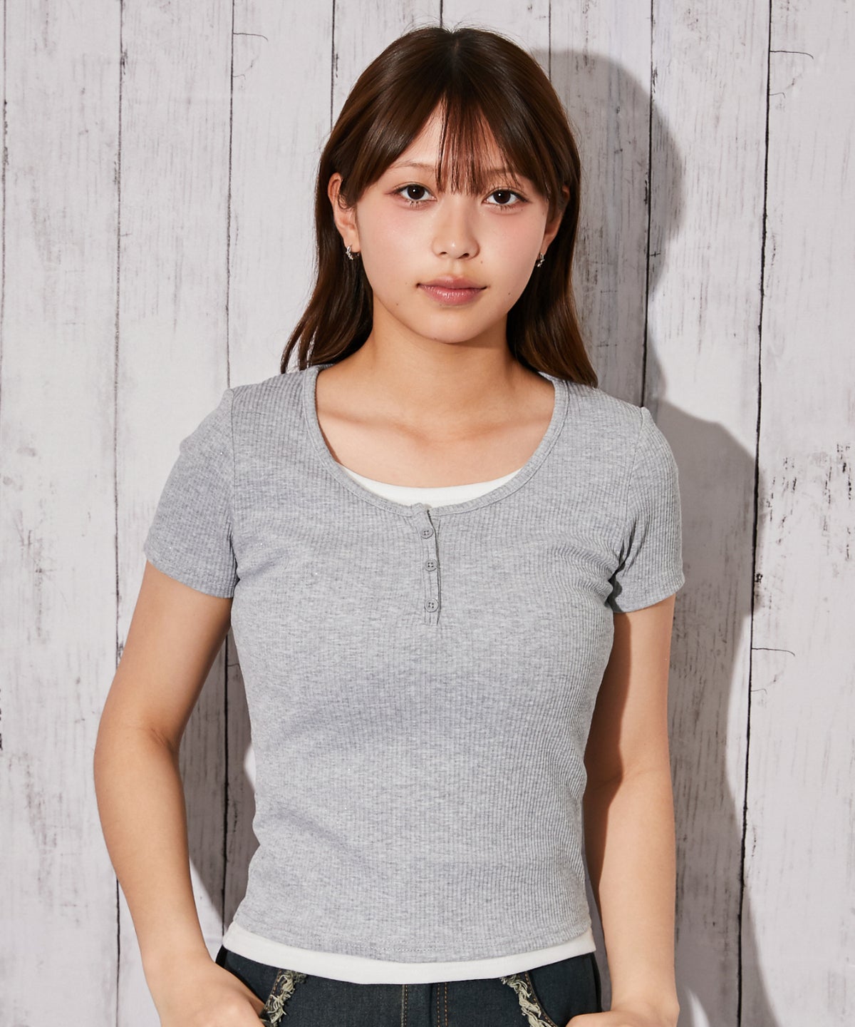 《フロントボタン×テレコ素材》カットソー/カジュアル/Y2K/春夏/全5色