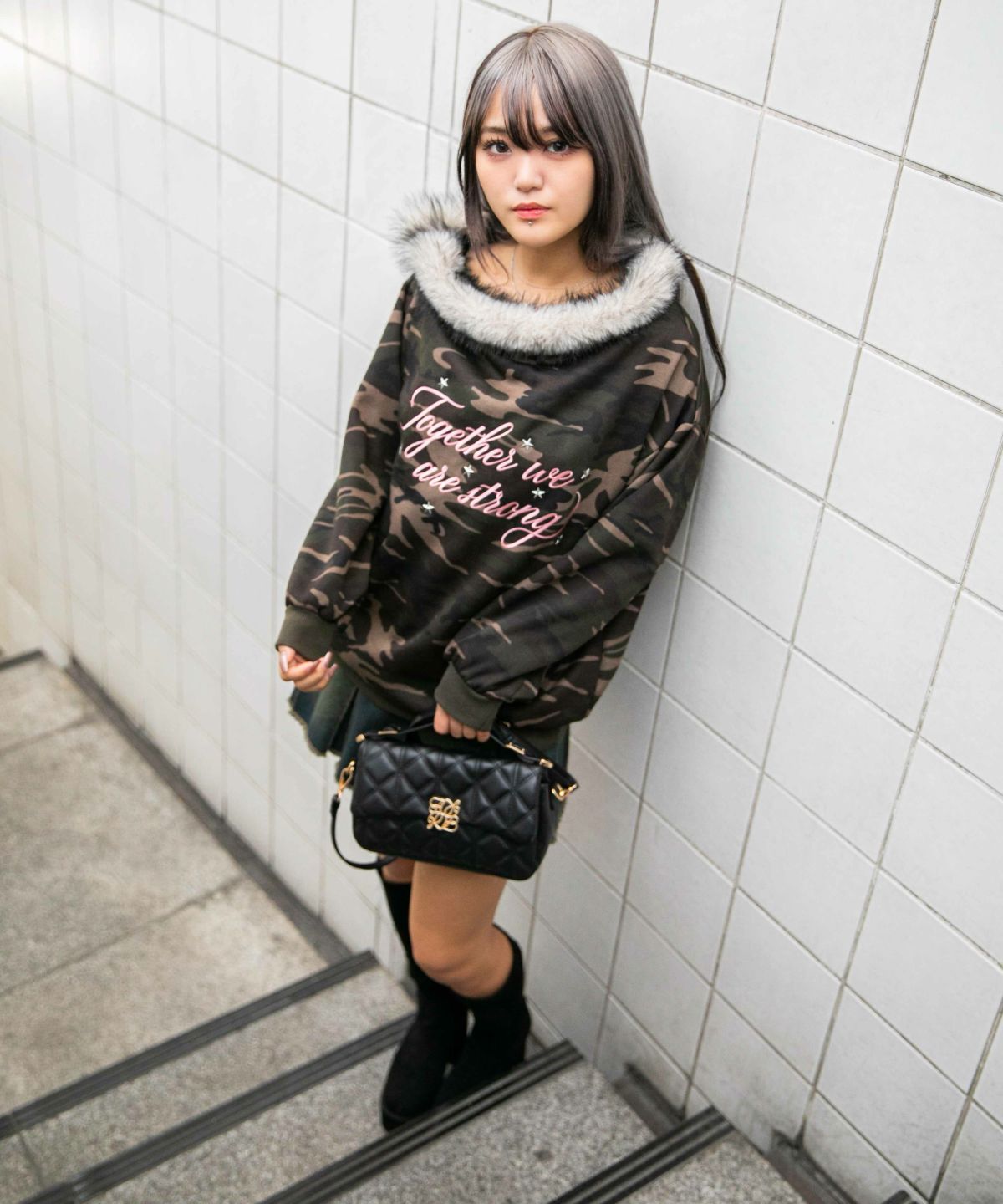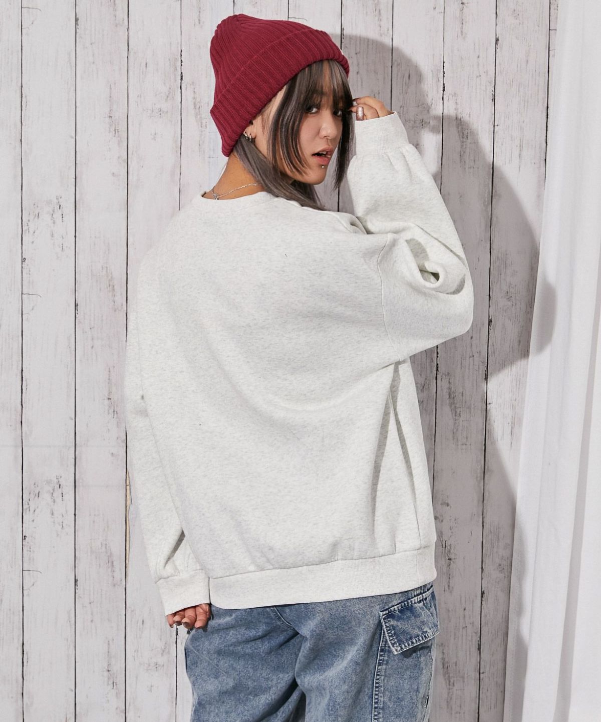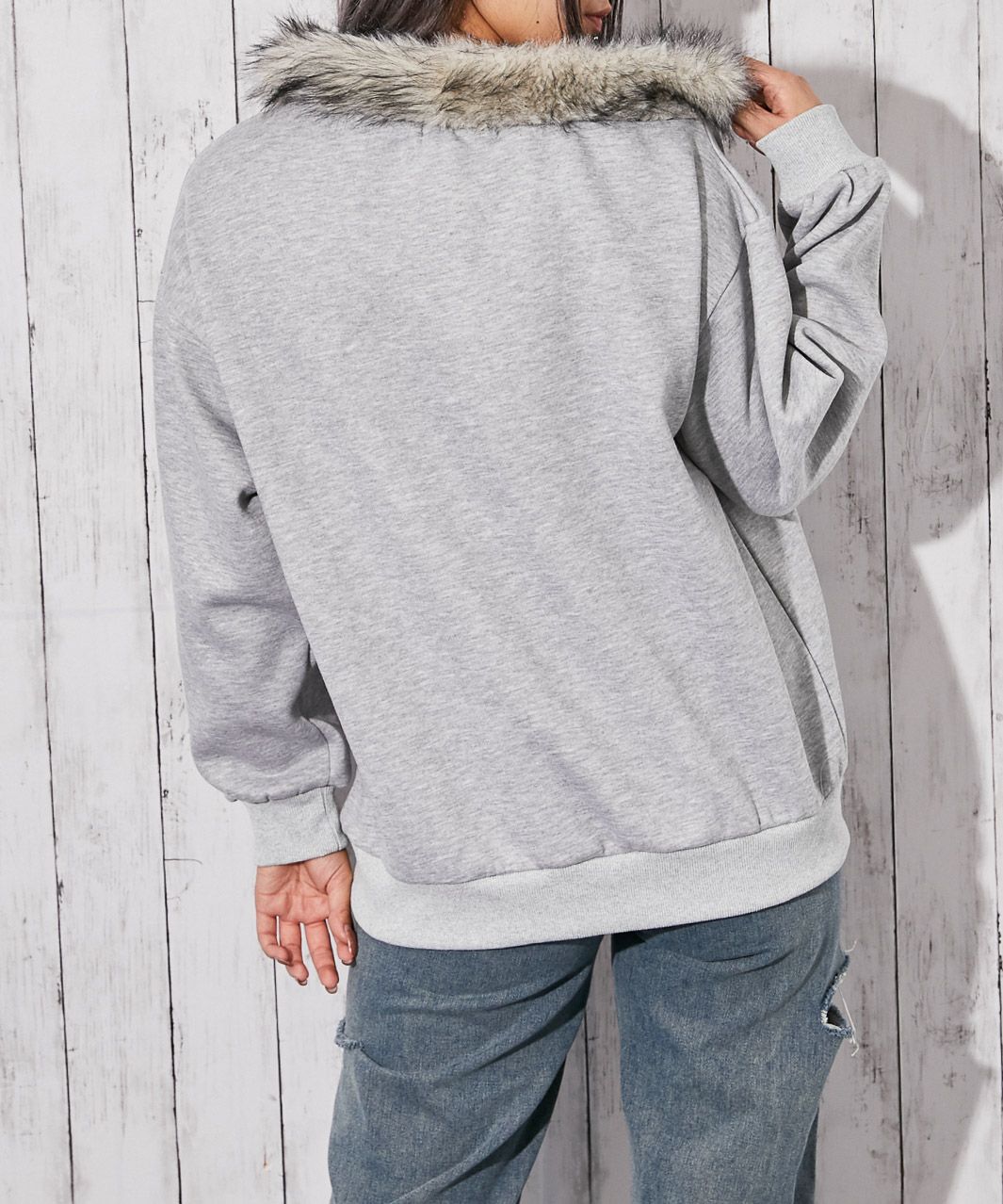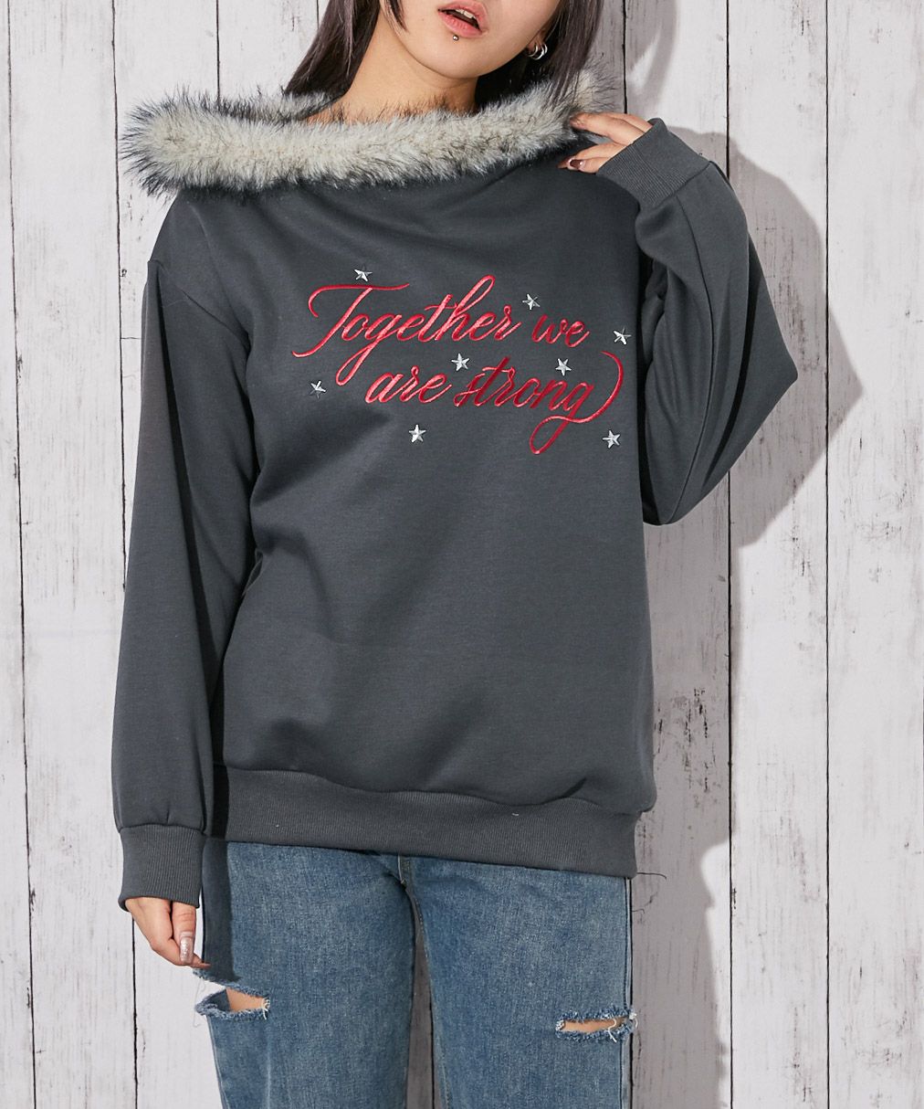 《ファー付×バックロゴ》裏起毛スウェットワンショルプルオーバー