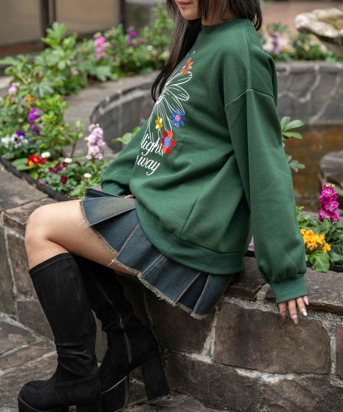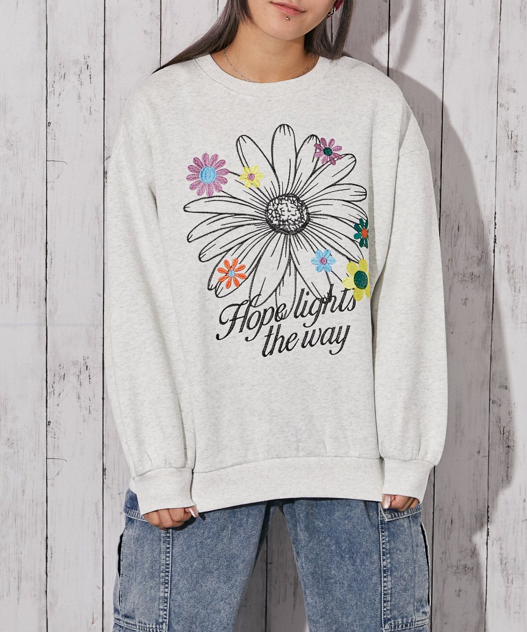 《フラワー刺繍×裏起毛》ストリートフェミスウェット