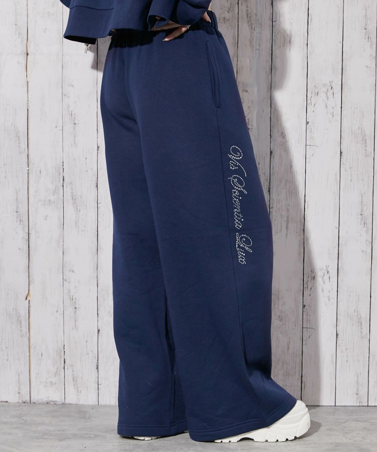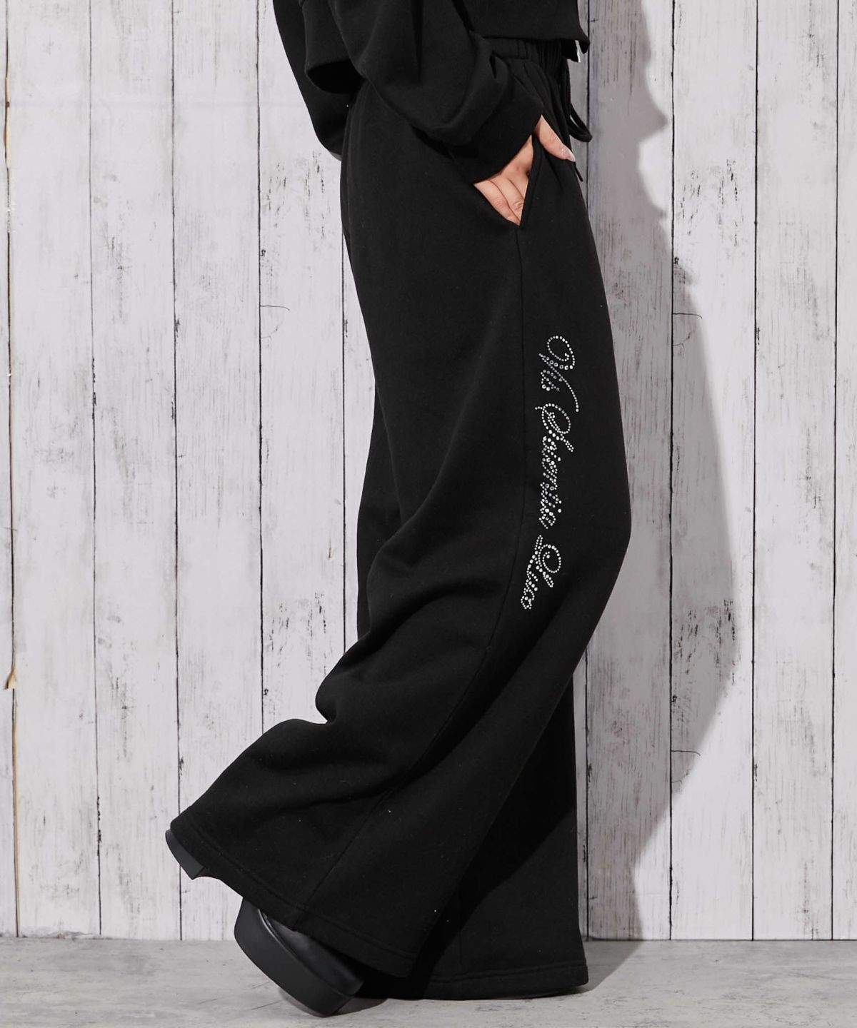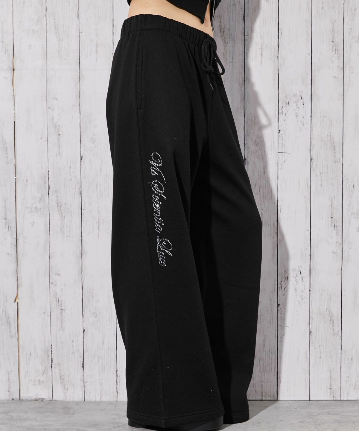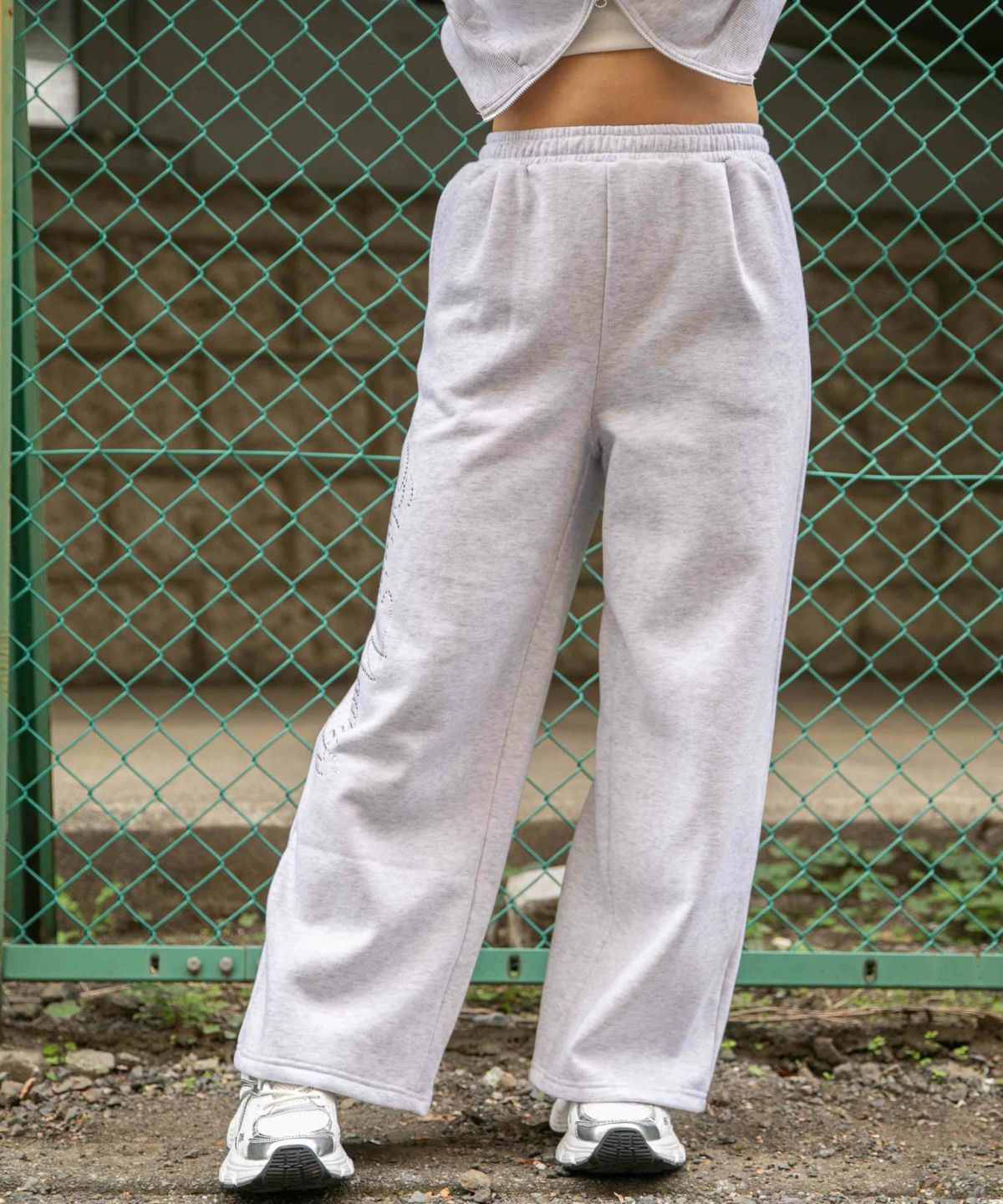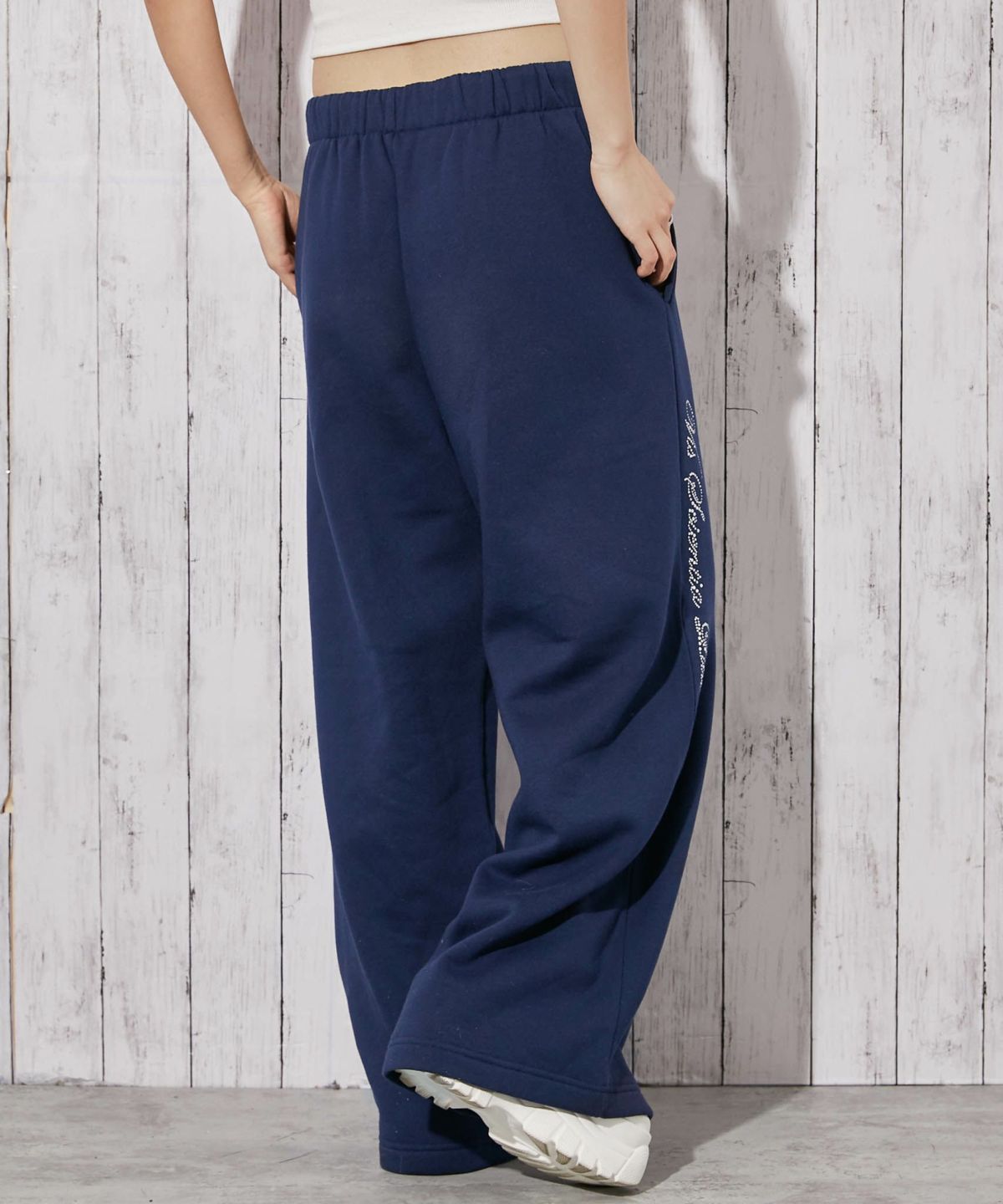 《ストーンロゴ×ワイド》ゆるシルエット◎ 裏起毛 ストリート スウェットパンツ