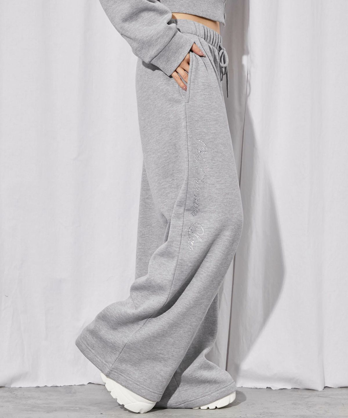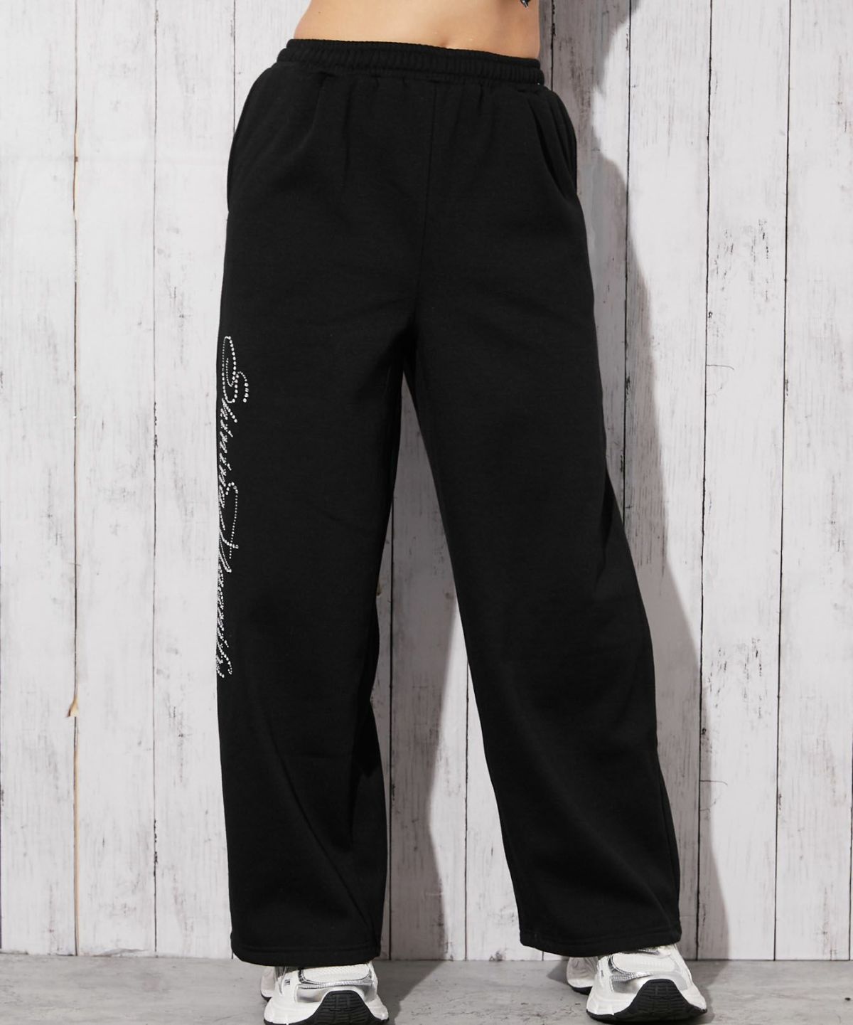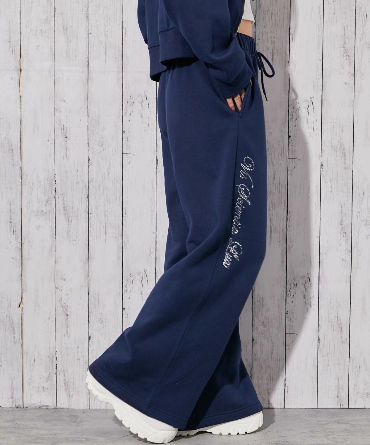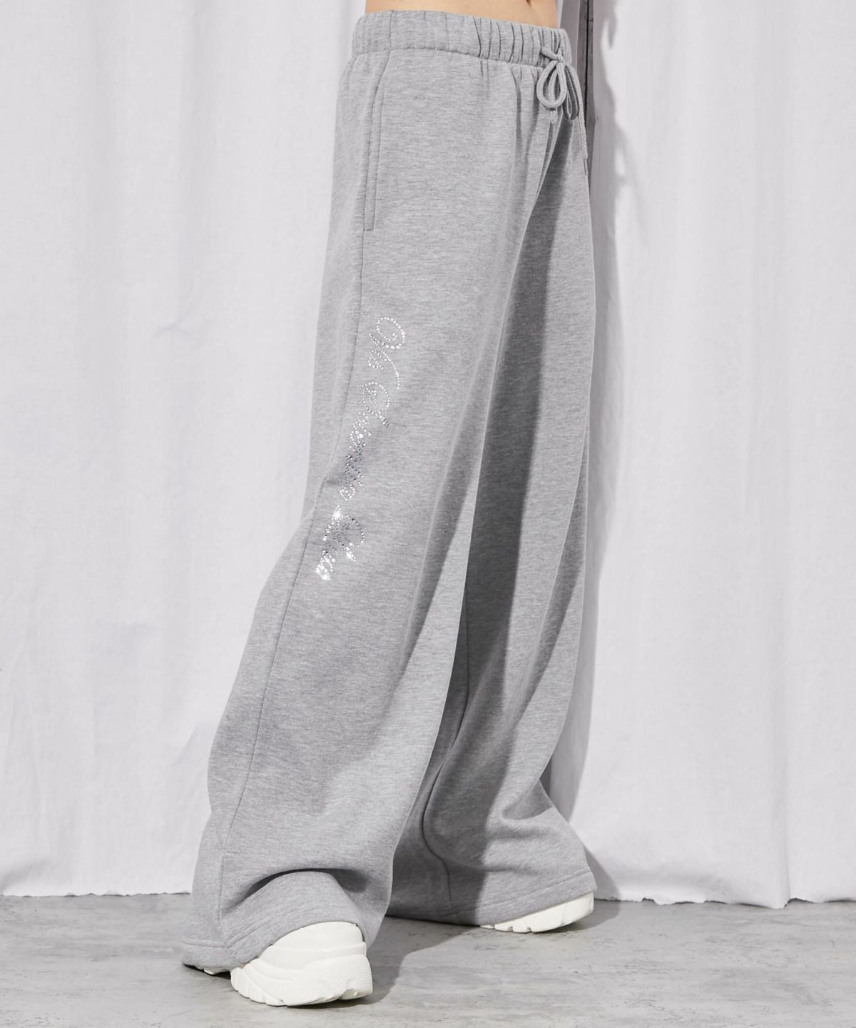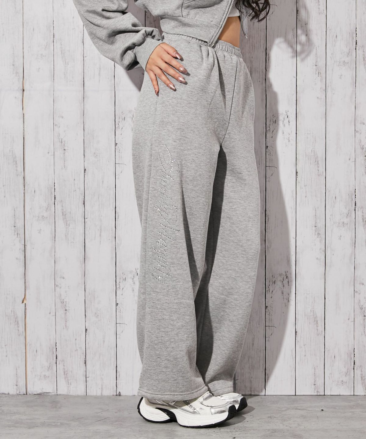 《ストーンロゴ×ワイド》ゆるシルエット◎ 裏起毛 ストリート スウェットパンツ