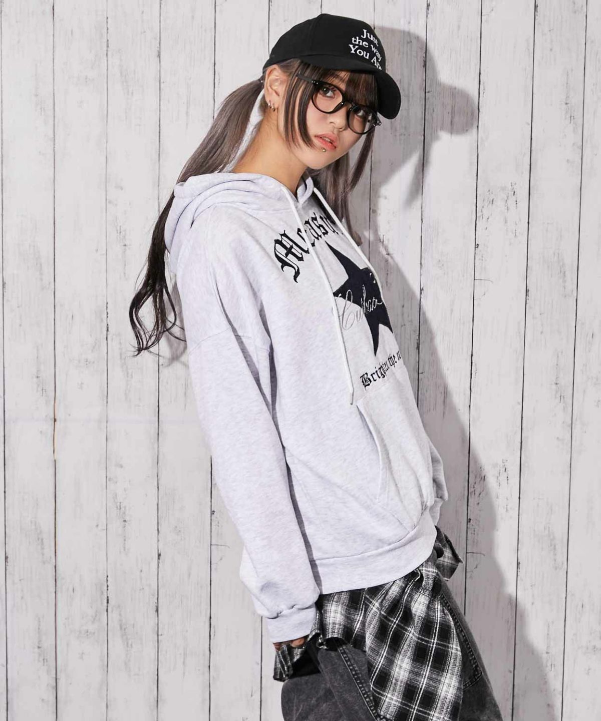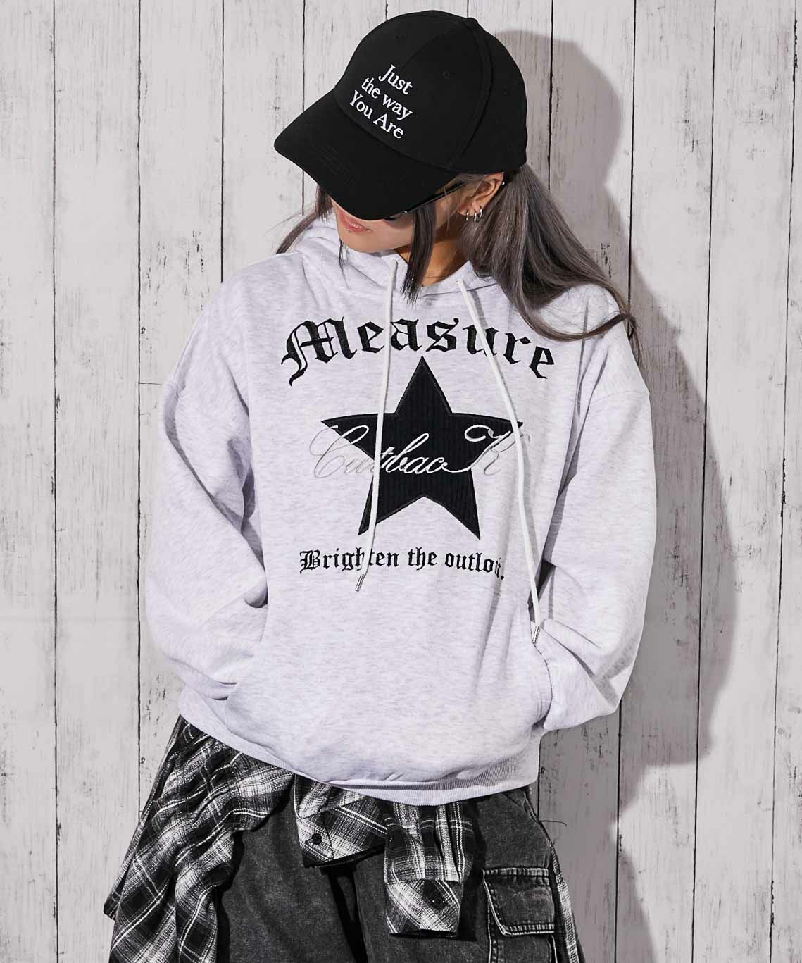 《スター×刺繍ロゴ》裏起毛スウェットパーカー 秋冬◎