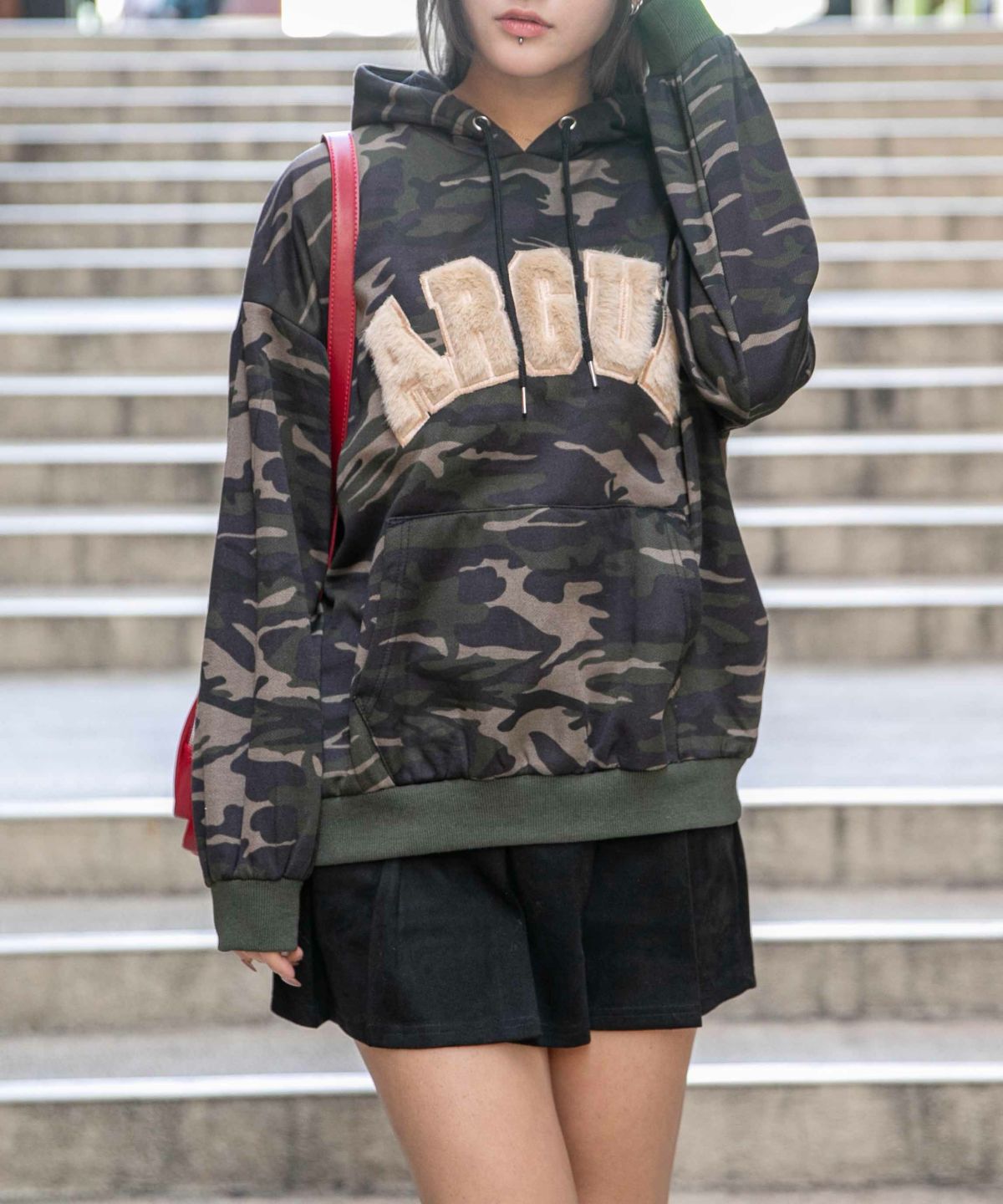 《ファーパッチARGUEロゴ》裏起毛スウェットパーカー 秋冬◎