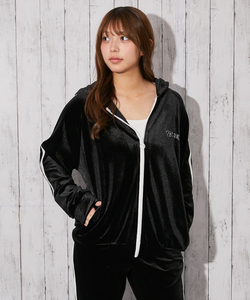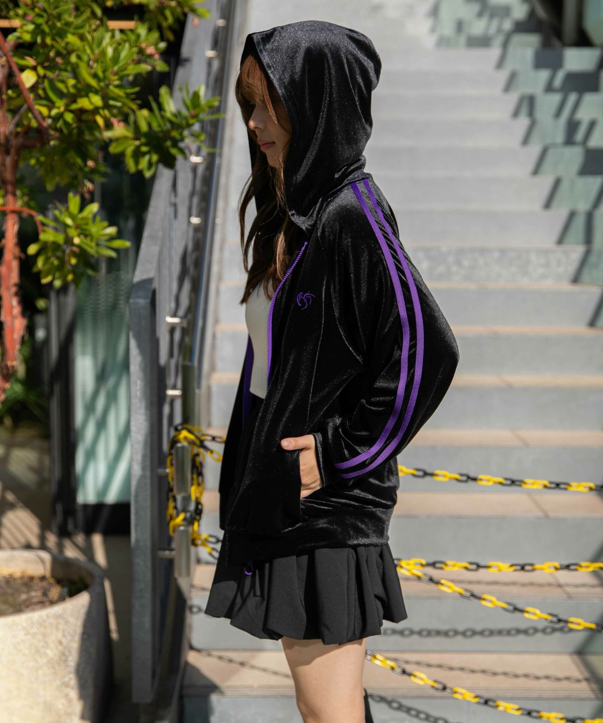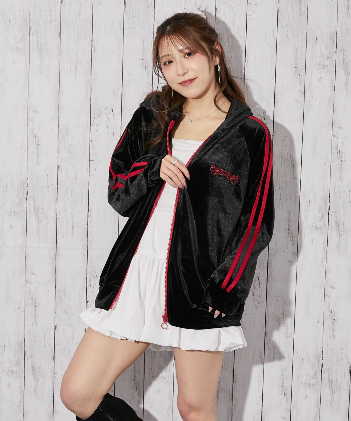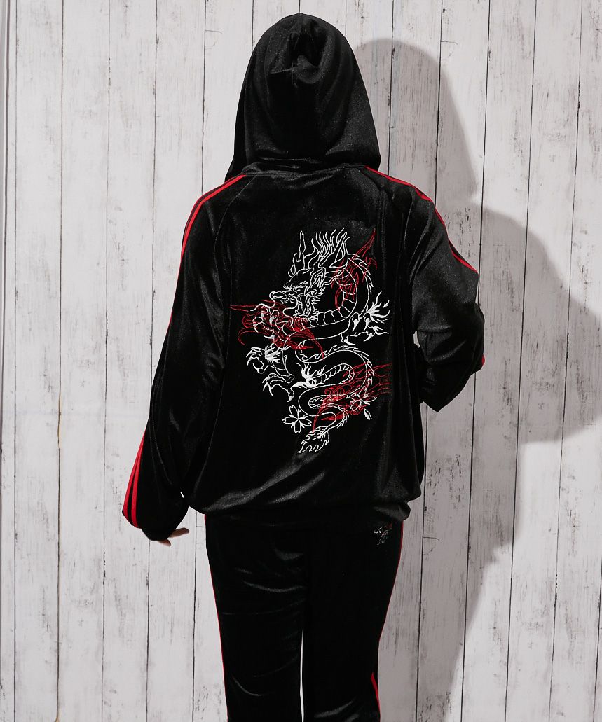《ベロア×ドラゴン刺繍》サイドラインジップパーカー
