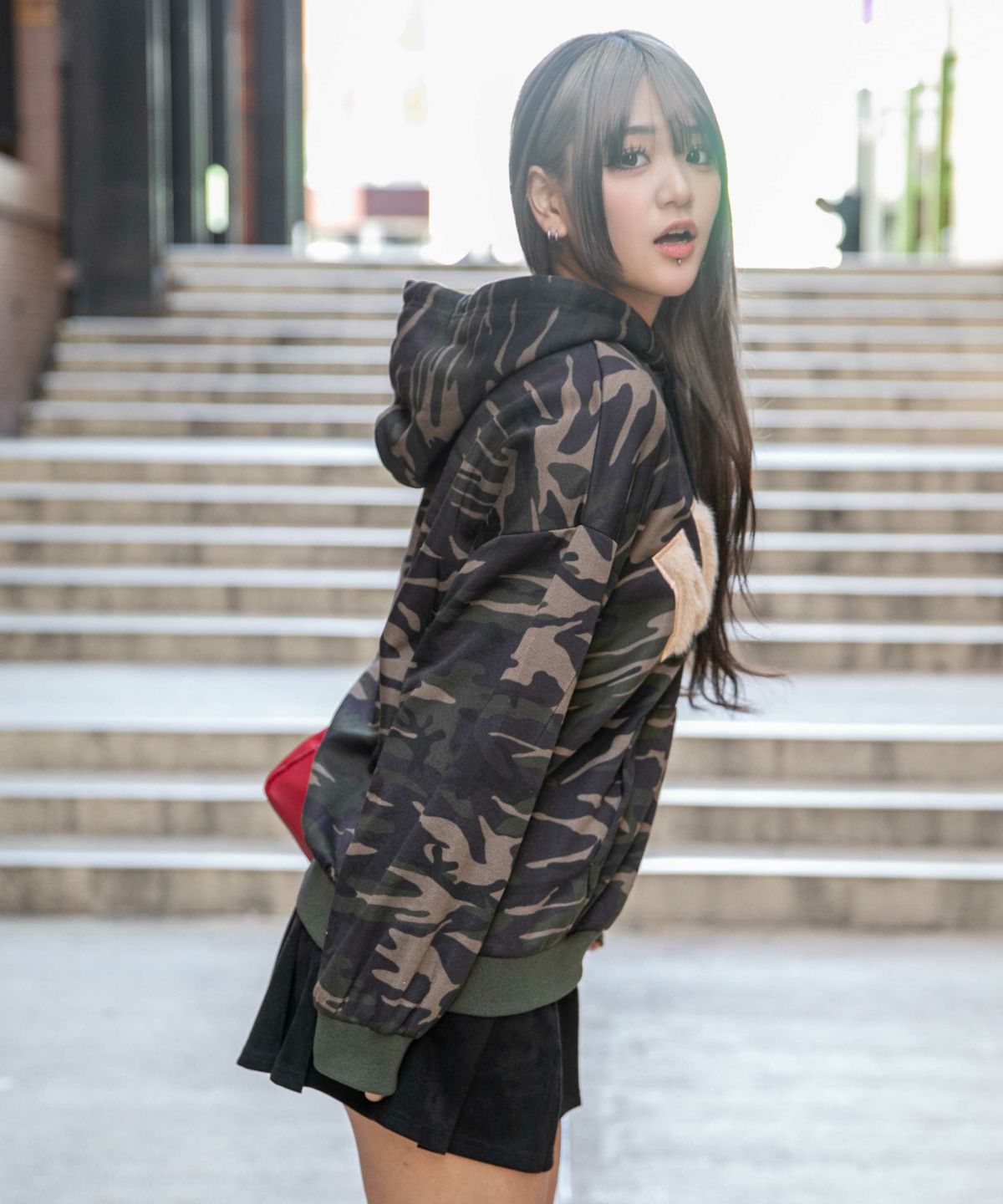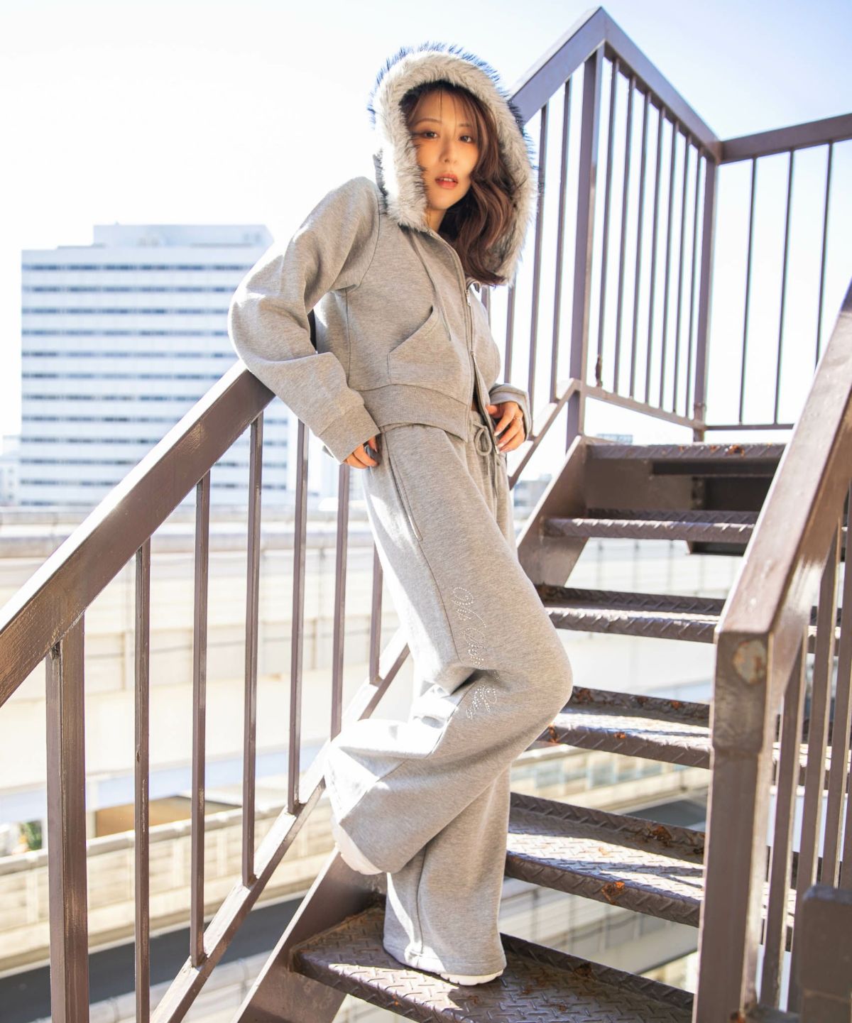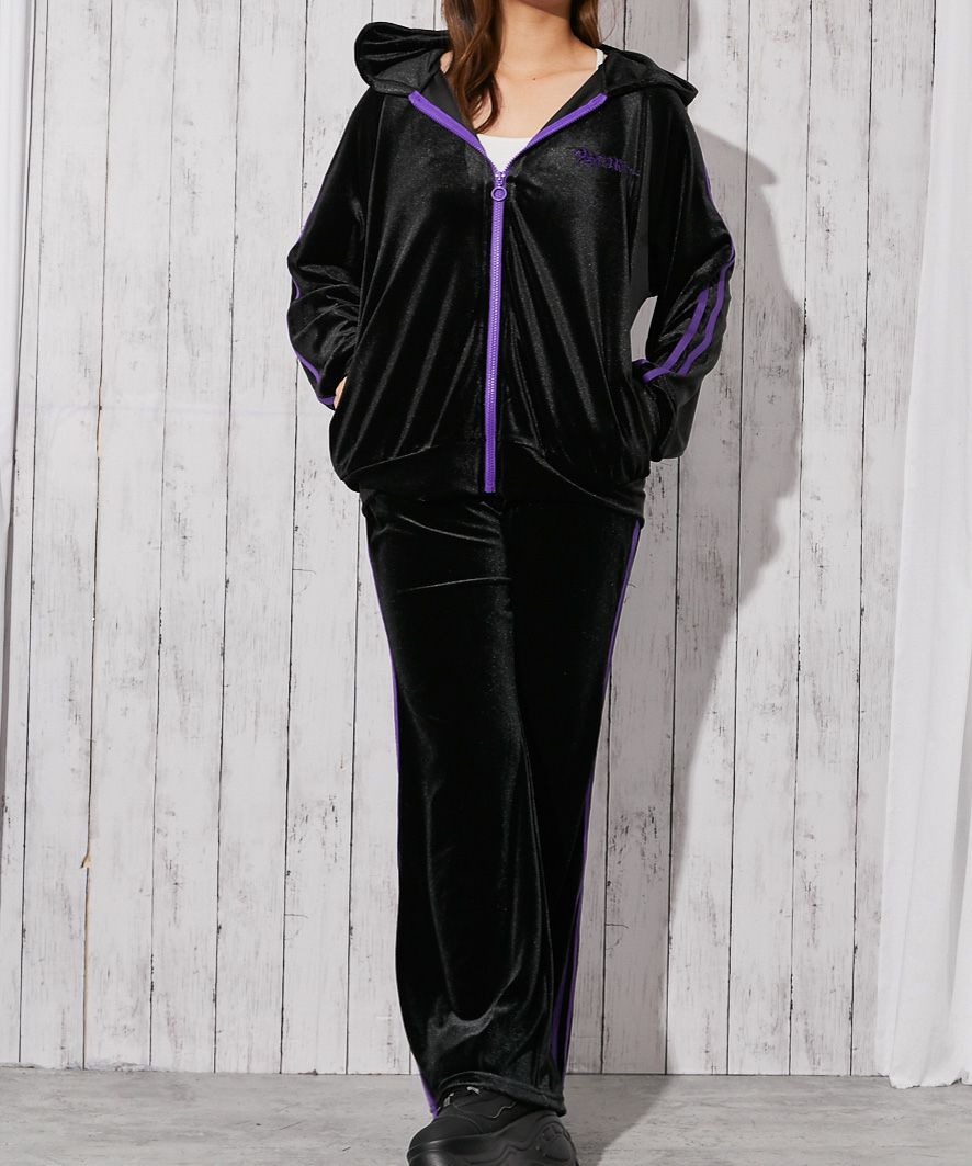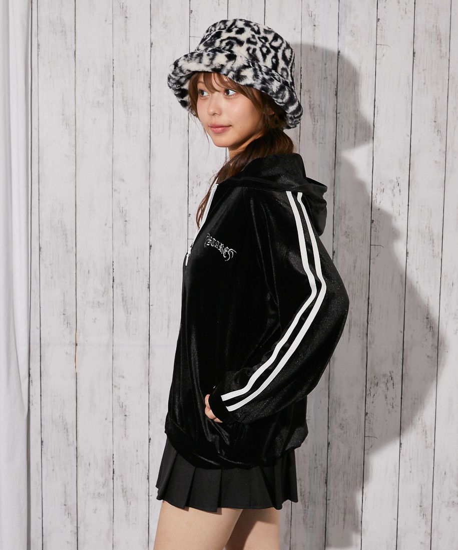 《ベロア×ドラゴン刺繍》サイドラインジップパーカー