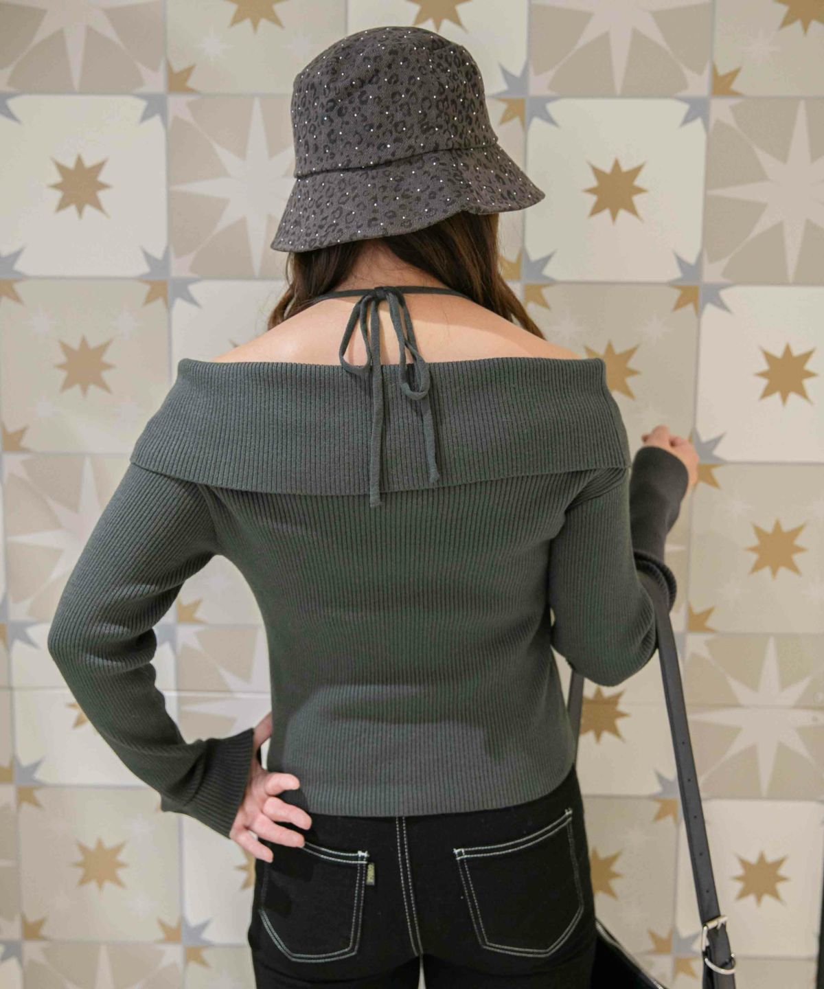 《ふわモコ×前後2WAY》フェミ可愛い◎肩リボンフェザーニット秋冬トップス