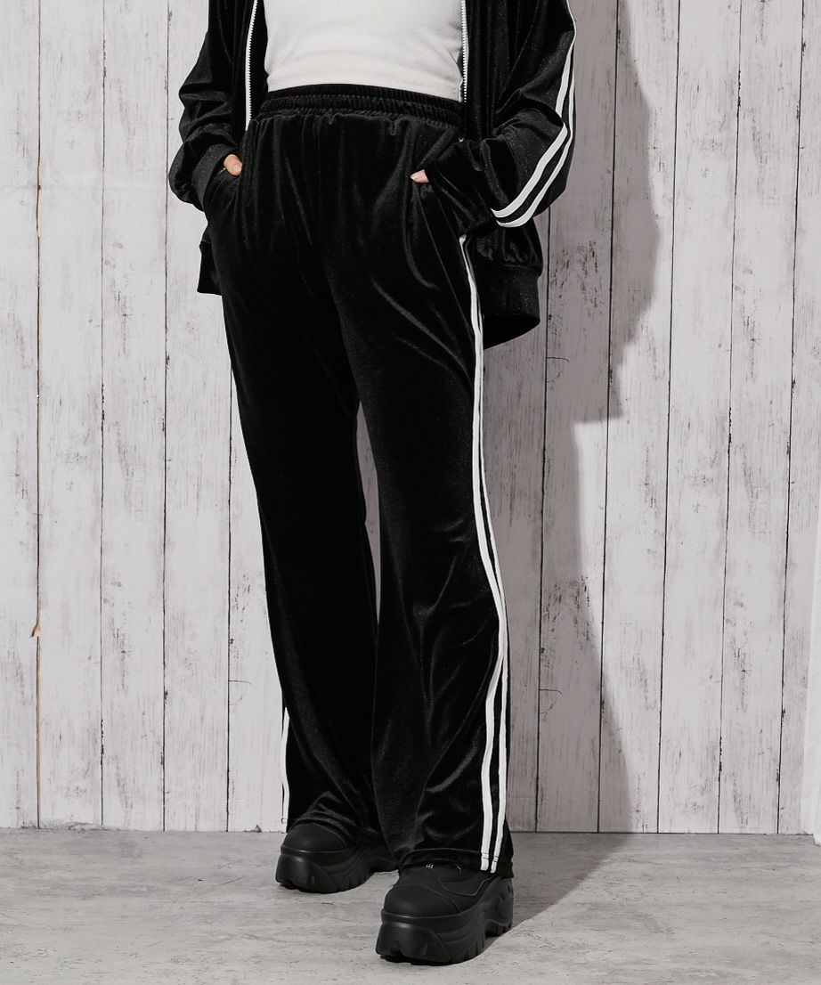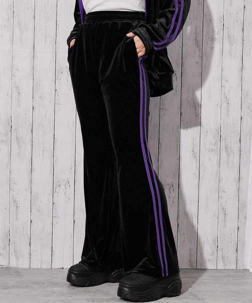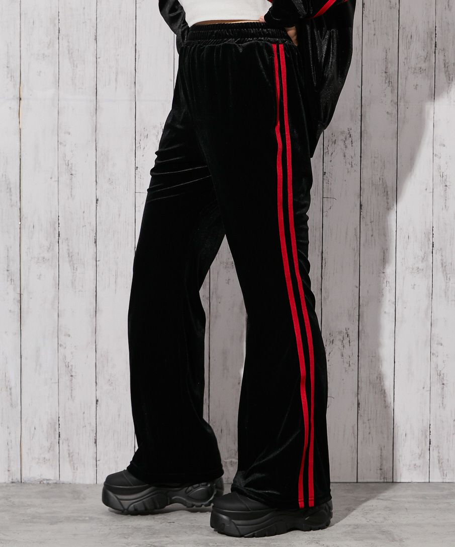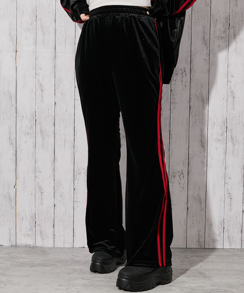 《ベロア×ドラゴン刺繍》サイドラインストレートパンツ