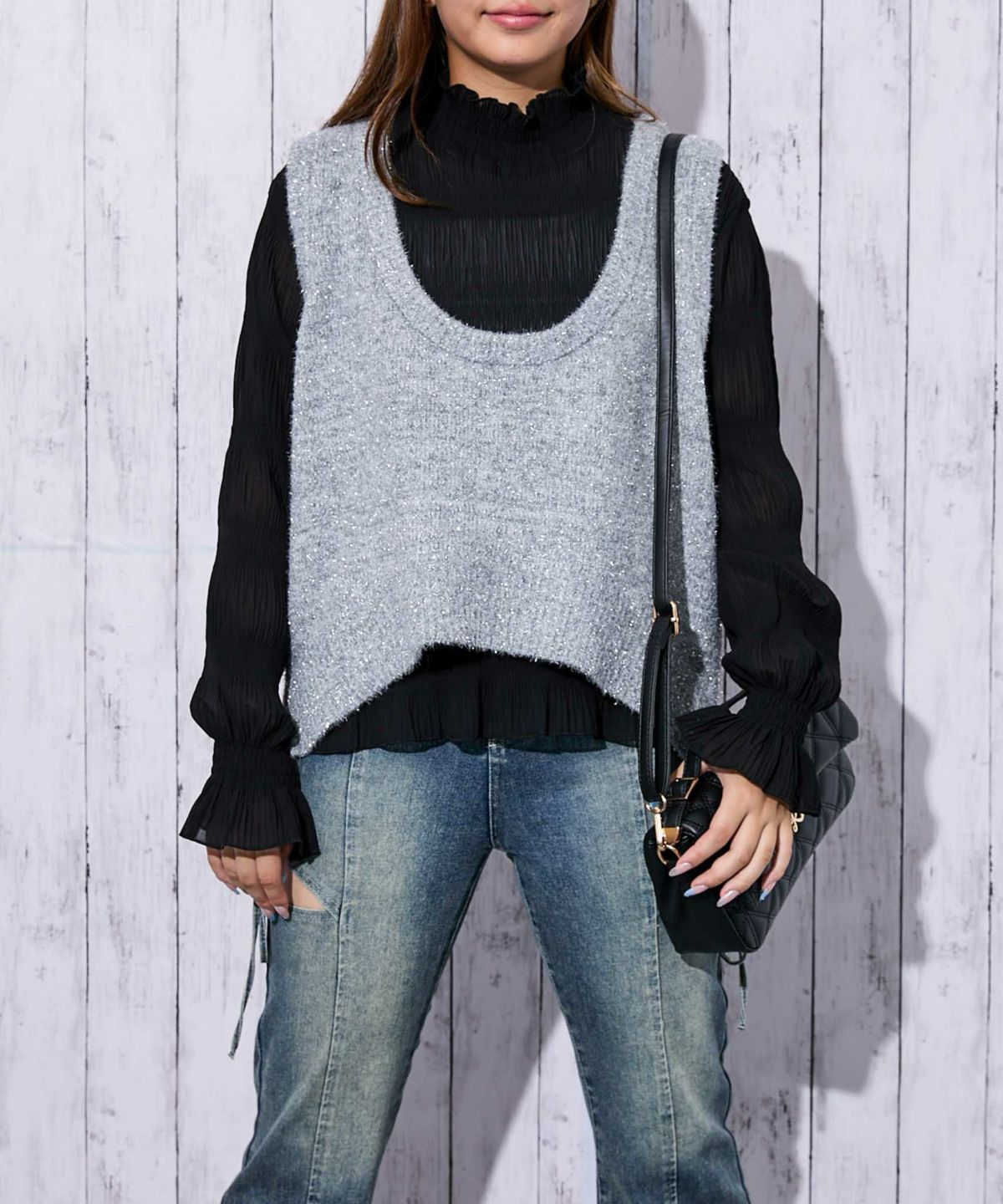他の画像を見る 《ラメ×前後差ヘム》レディース ニットベスト ノースリーブ プルオーバー レイヤード 春秋冬 2BUY10%OFF 定価 ¥ 4,939 のところ SALE価格 ¥ 1,639 税込 カートに入れる お気に入りに登録する