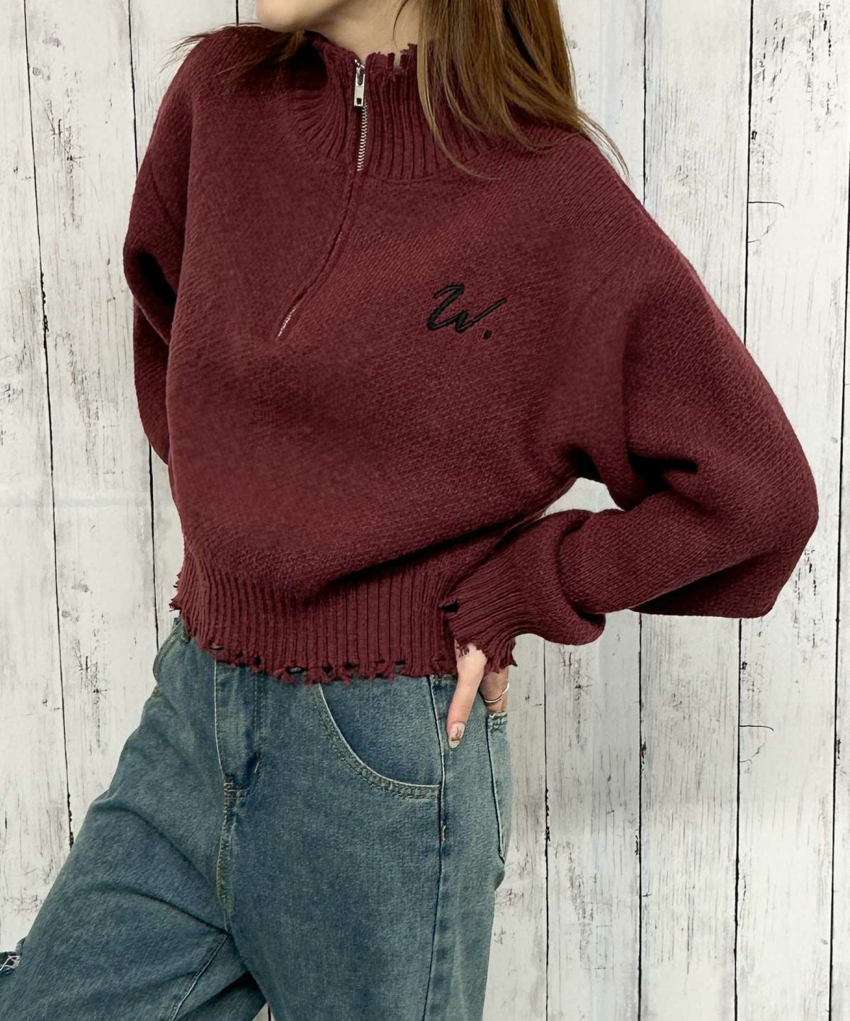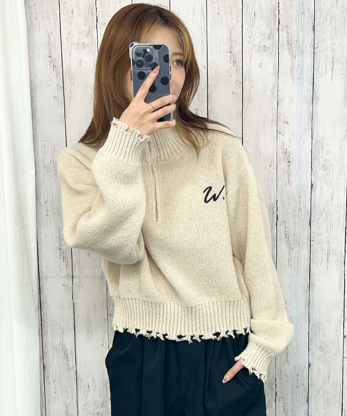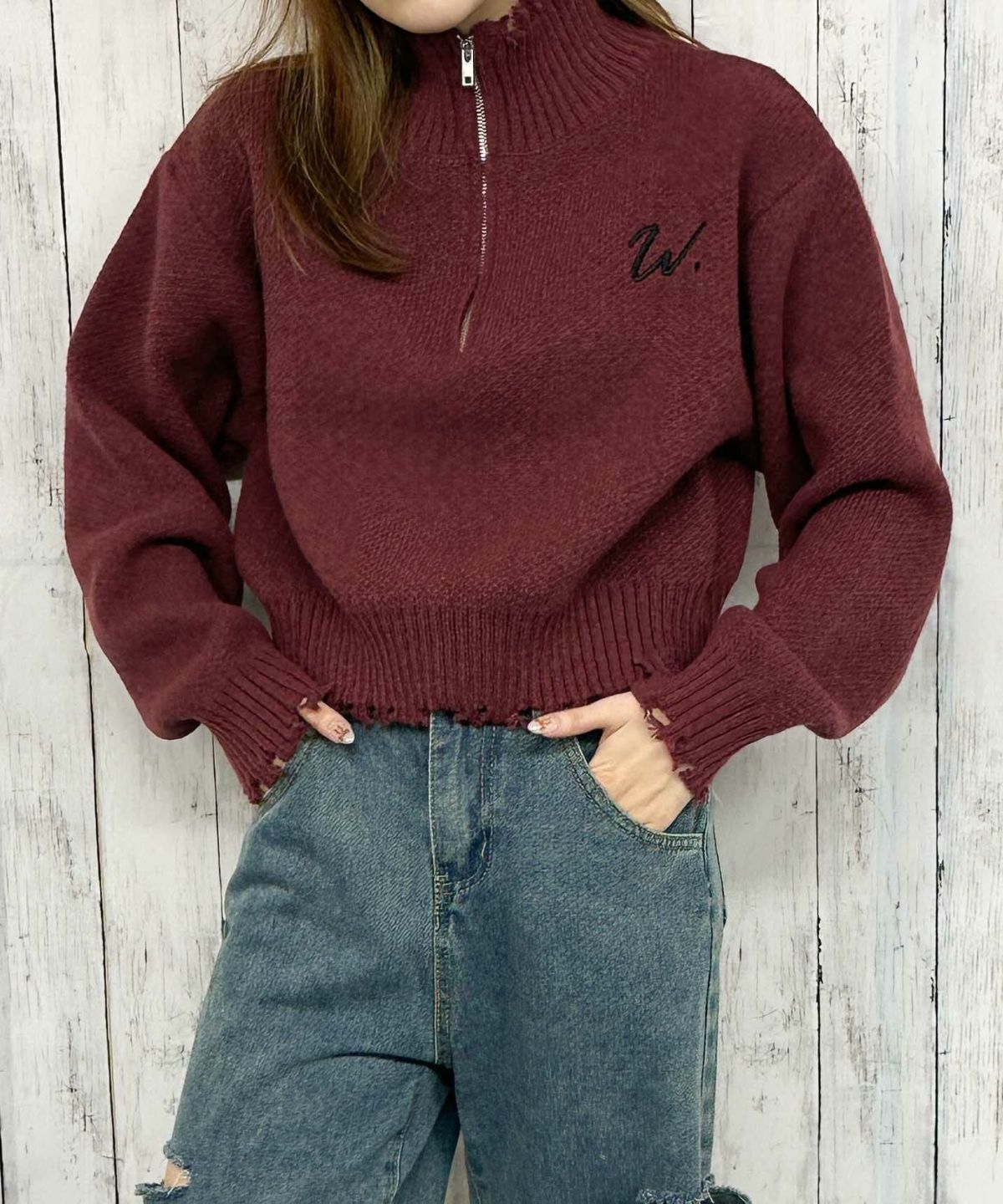 他の画像を見る 《ダメージ×ハーフジップ》レディース ニットプルオーバー ショート丈 秋冬 NEW 2BUY10%OFF 定価 ¥ 6,589 のところ SALE価格 ¥ 2,635 税込 カートに入れる お気に入りに登録する