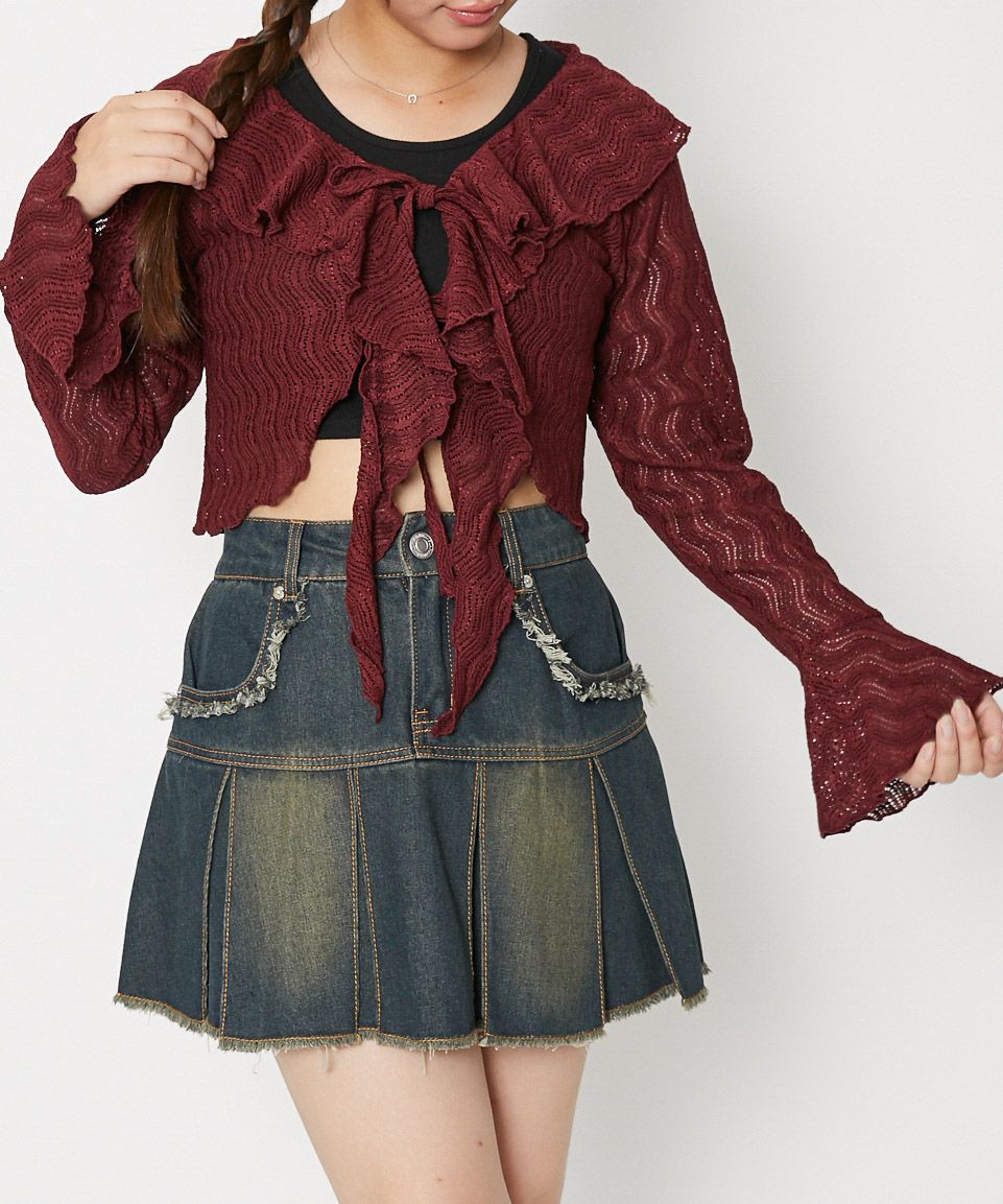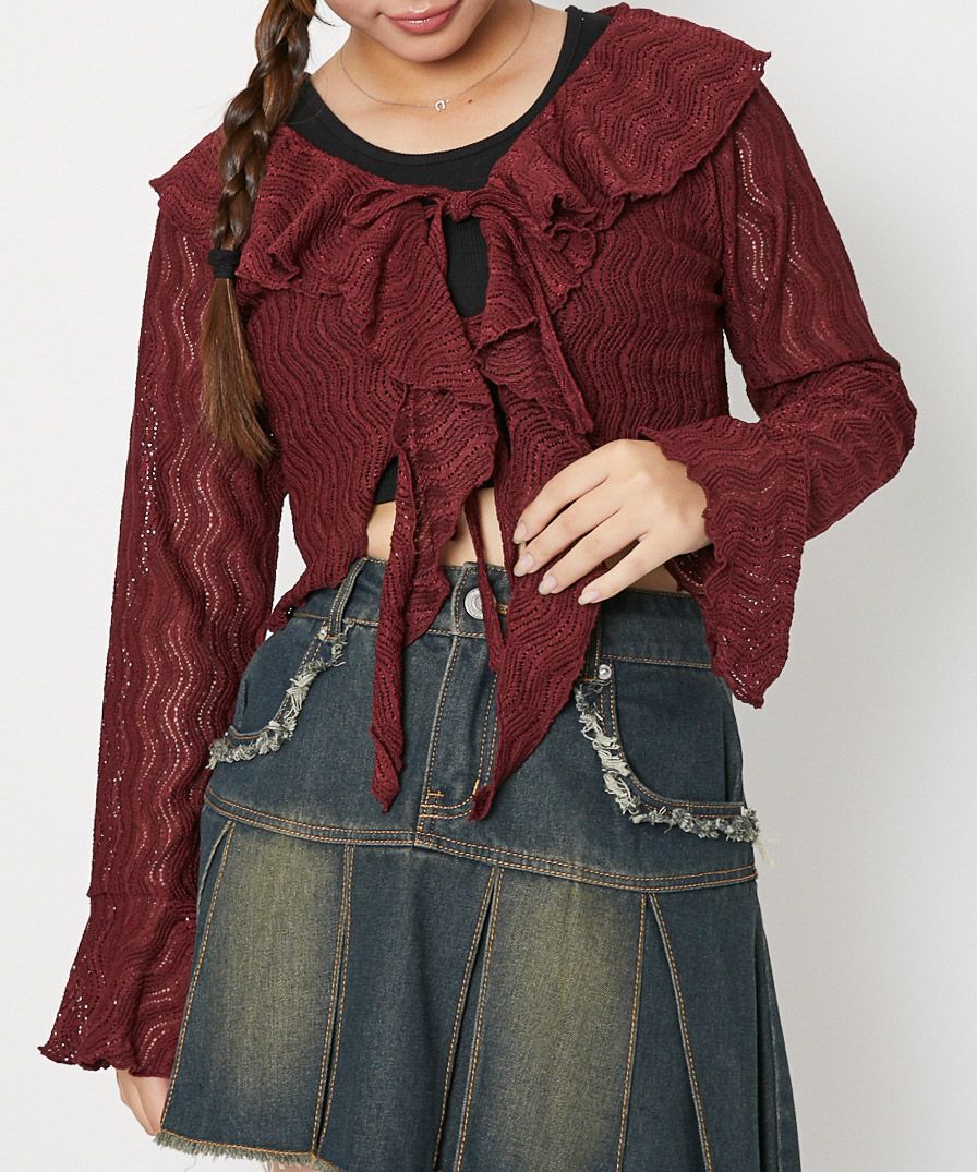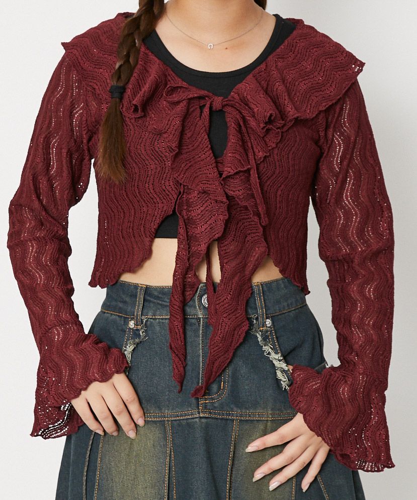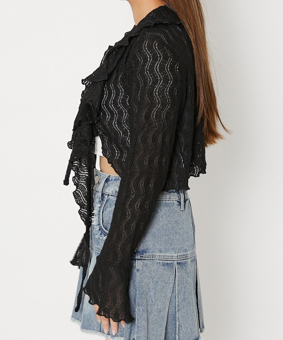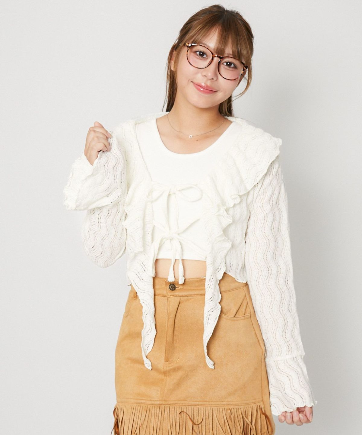 他の画像を見る 《透かし編み×フリルデザイン》レディース ニットソー カーデ風トップス フェミニン 春夏秋 2BUY10%OFF 定価 ¥ 4,939 のところ SALE価格 ¥ 2,469 税込 カートに入れる お気に入りに登録する