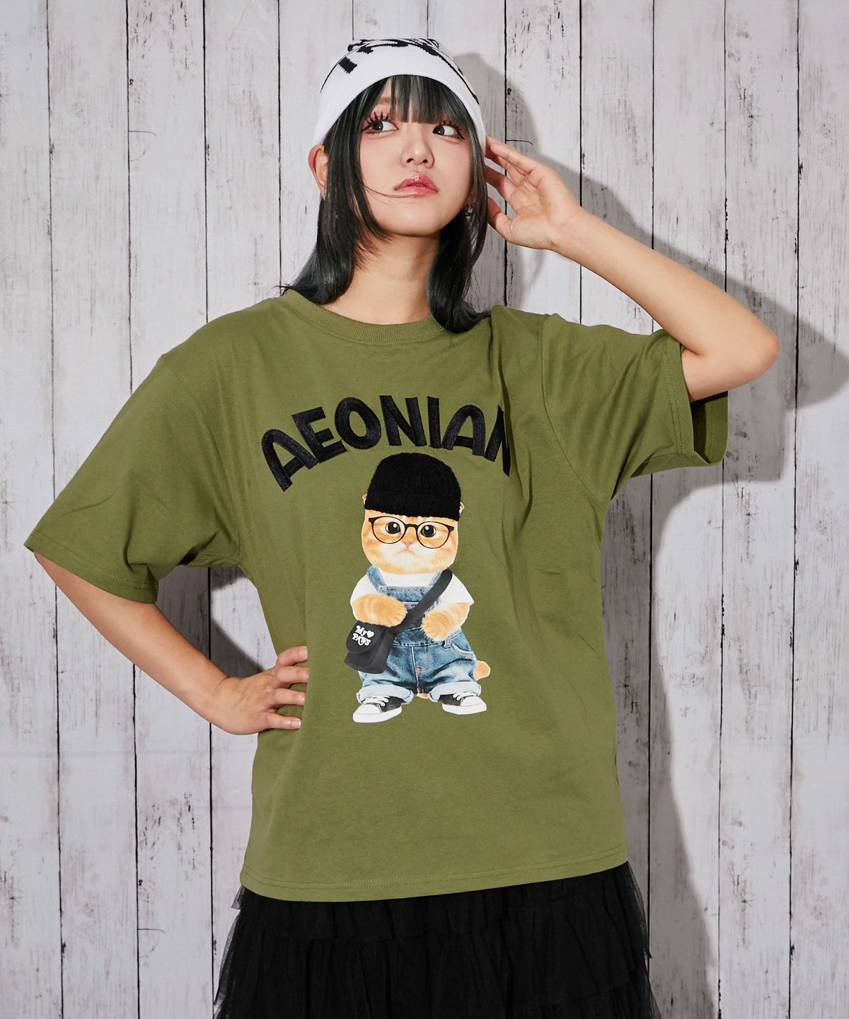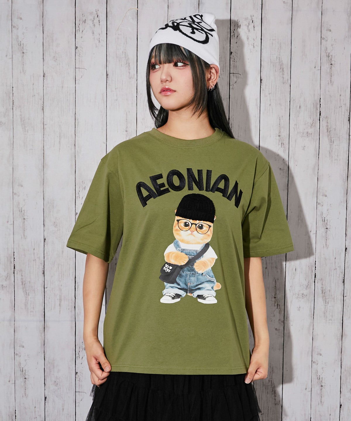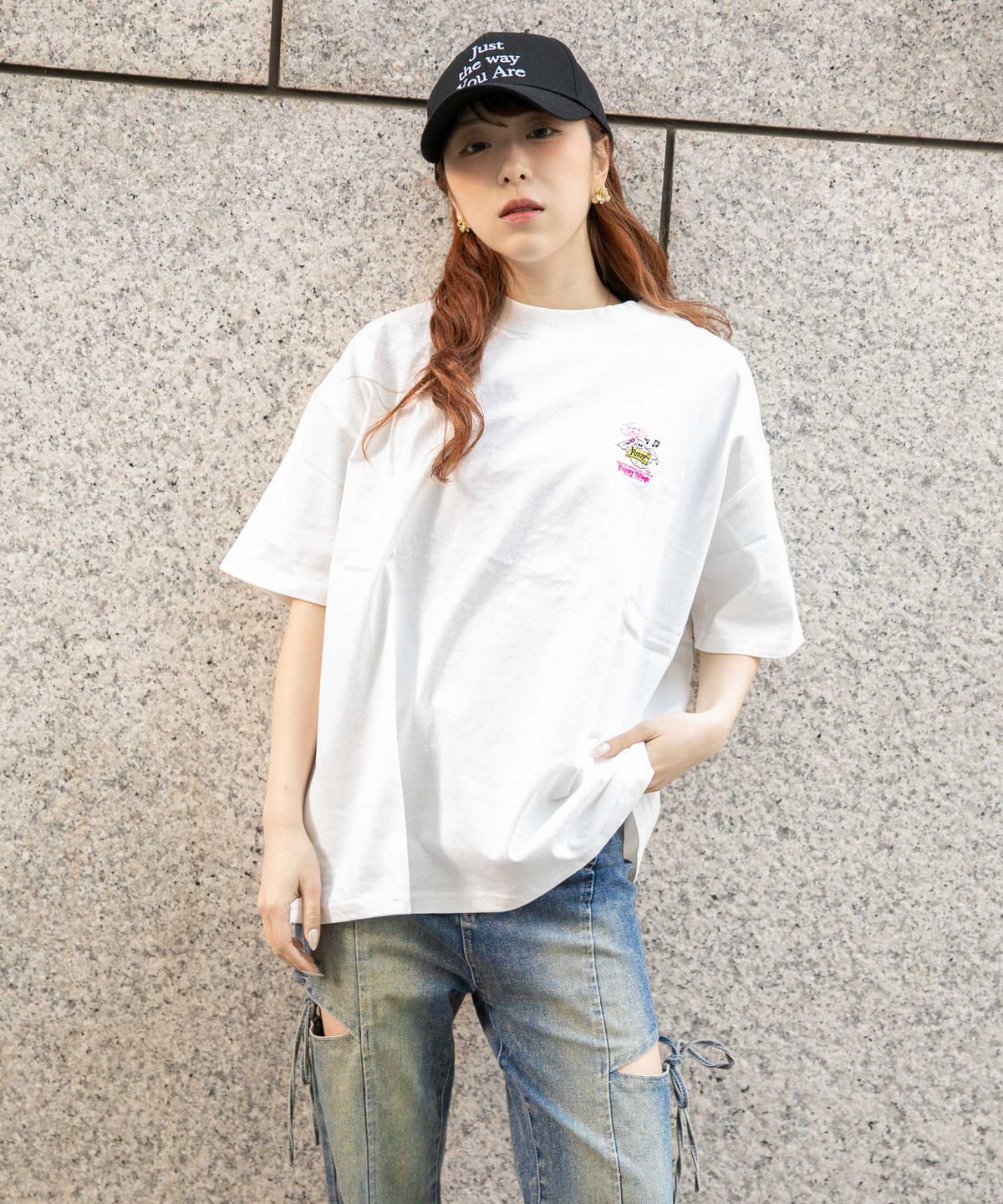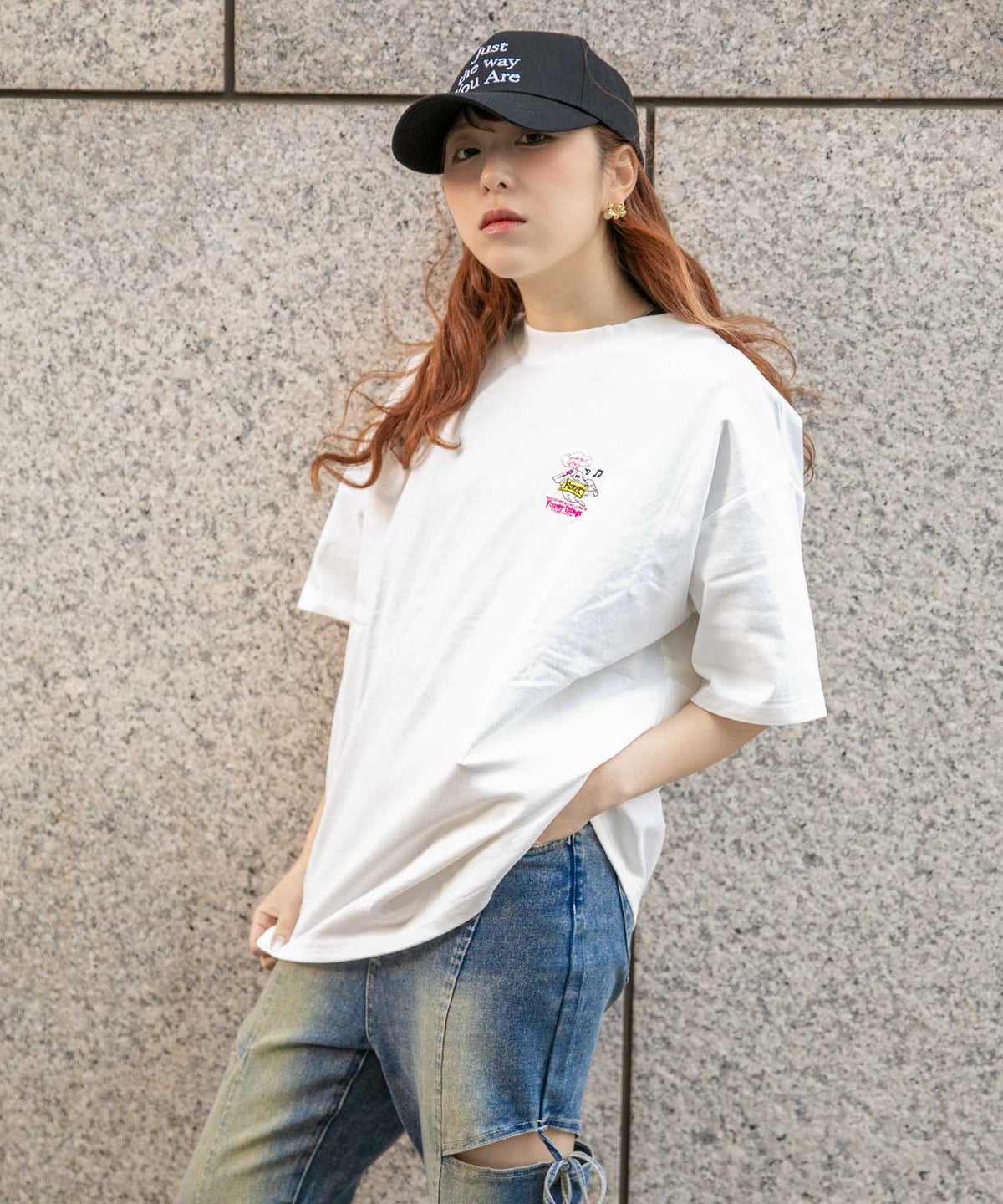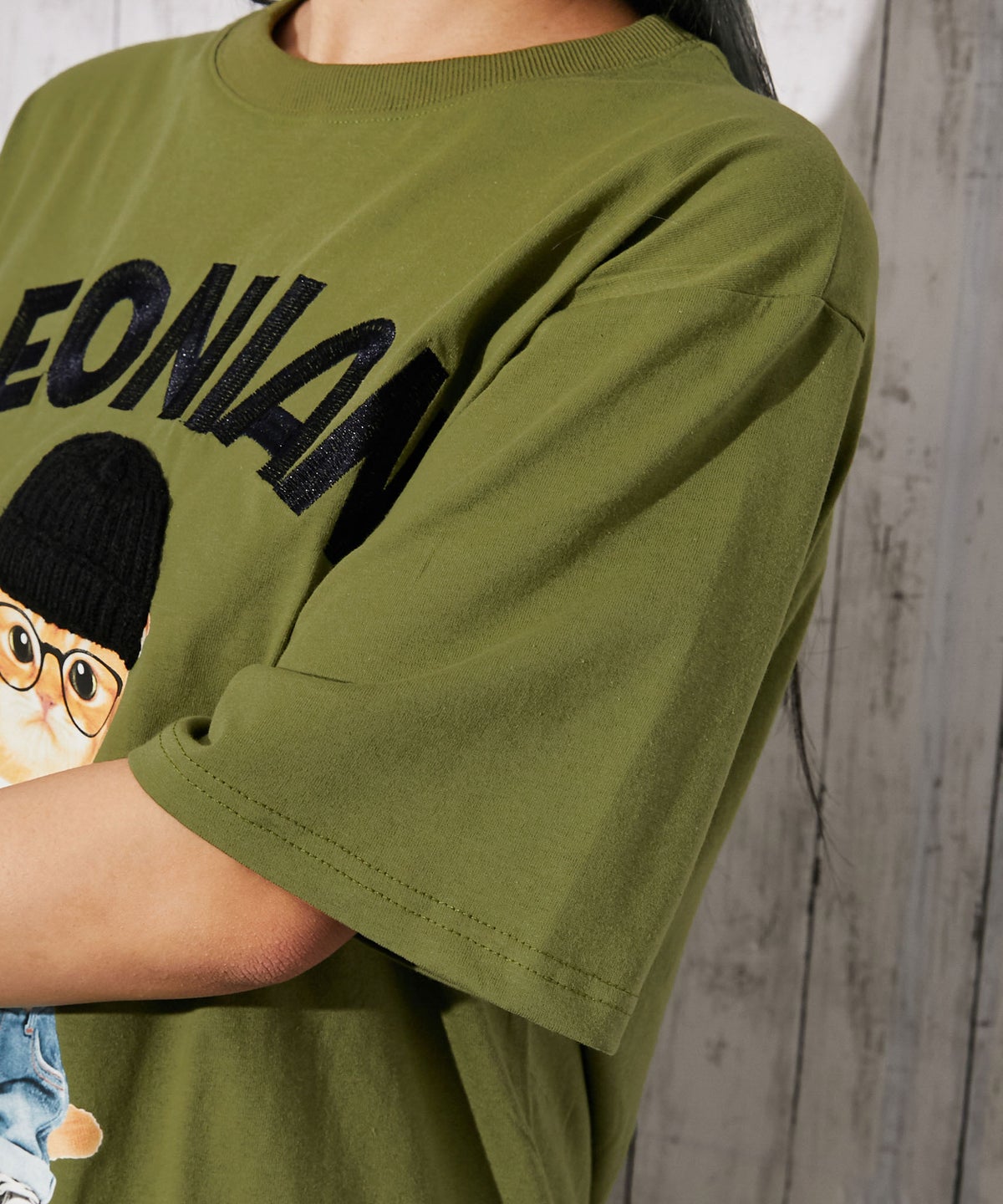 《刺繍ロゴ×帽子ネコ》オーバーサイズTシャツ/ストリート/春夏/全4色