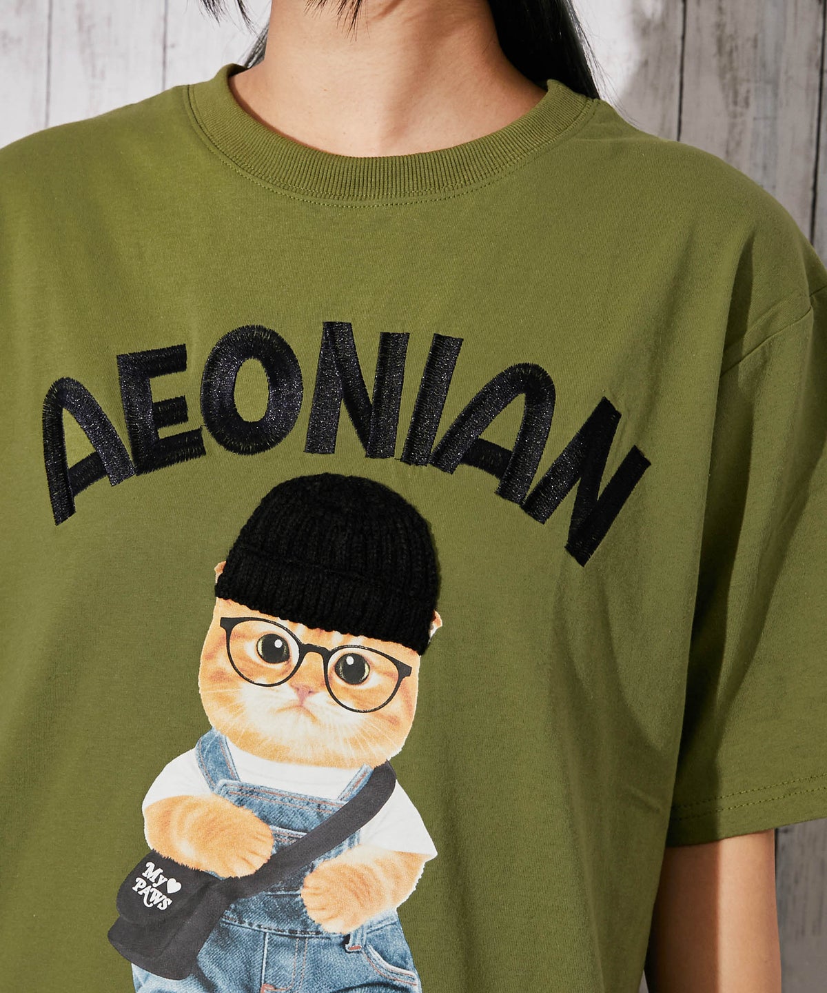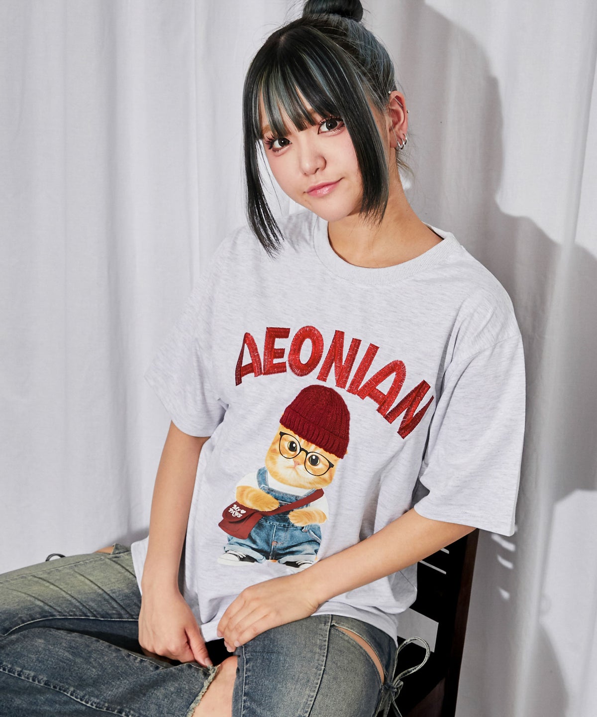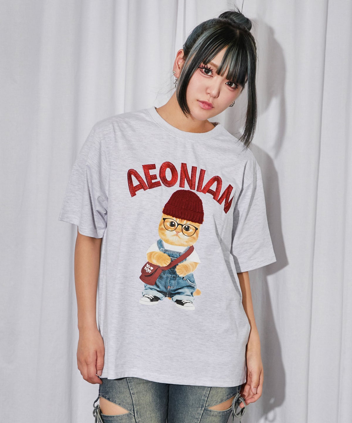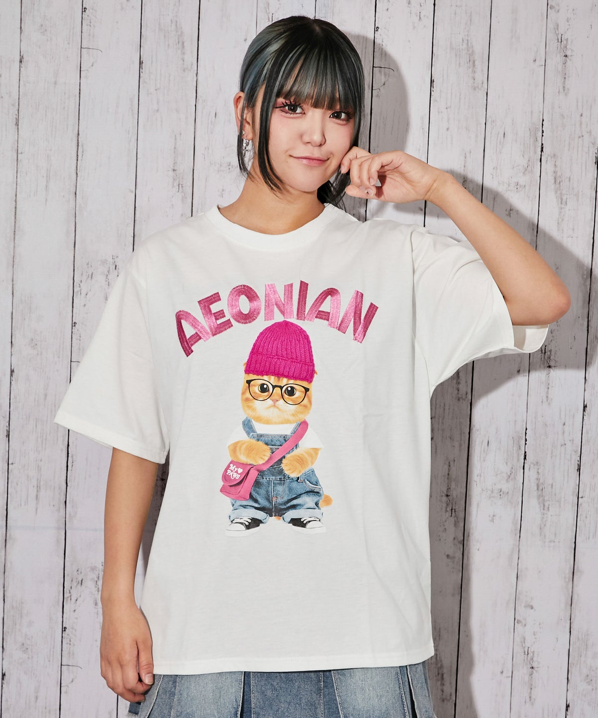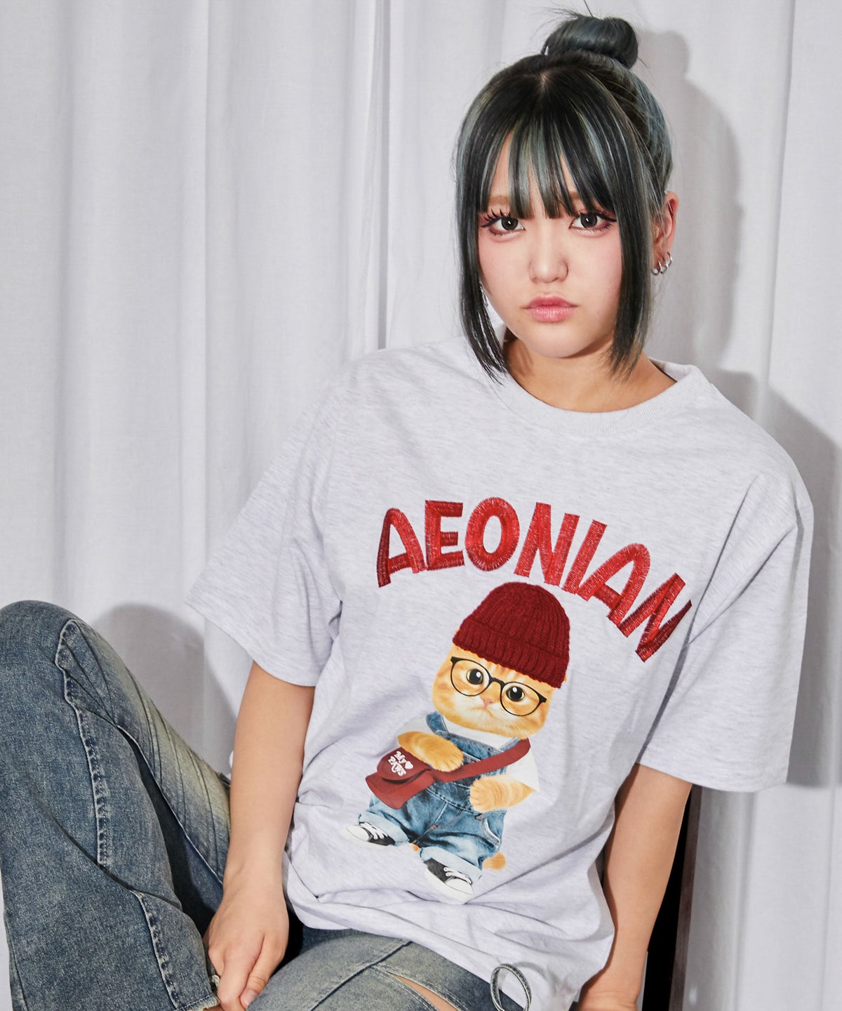 《刺繍ロゴ×帽子ネコ》オーバーサイズTシャツ/ストリート/春夏/全4色