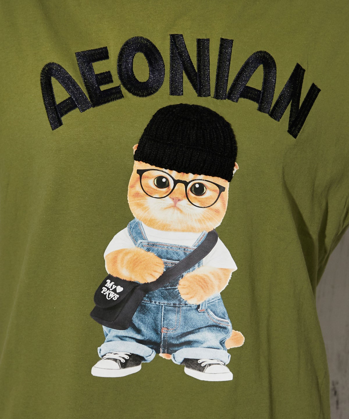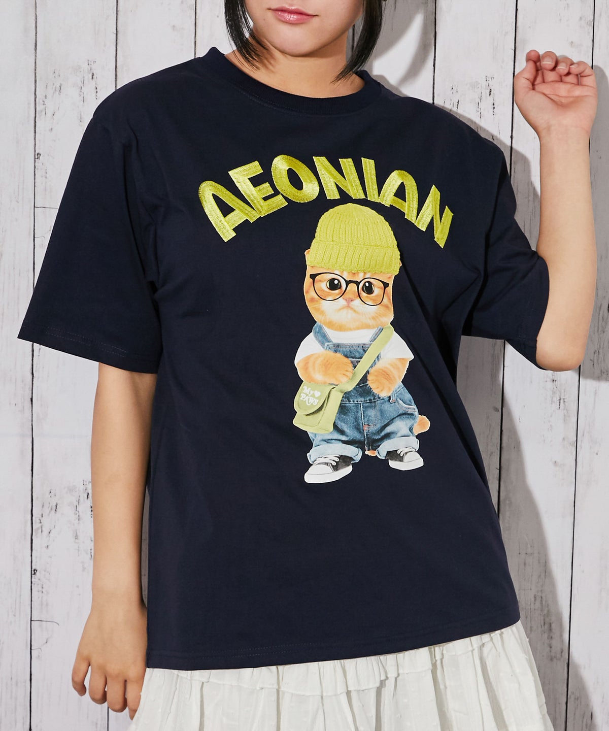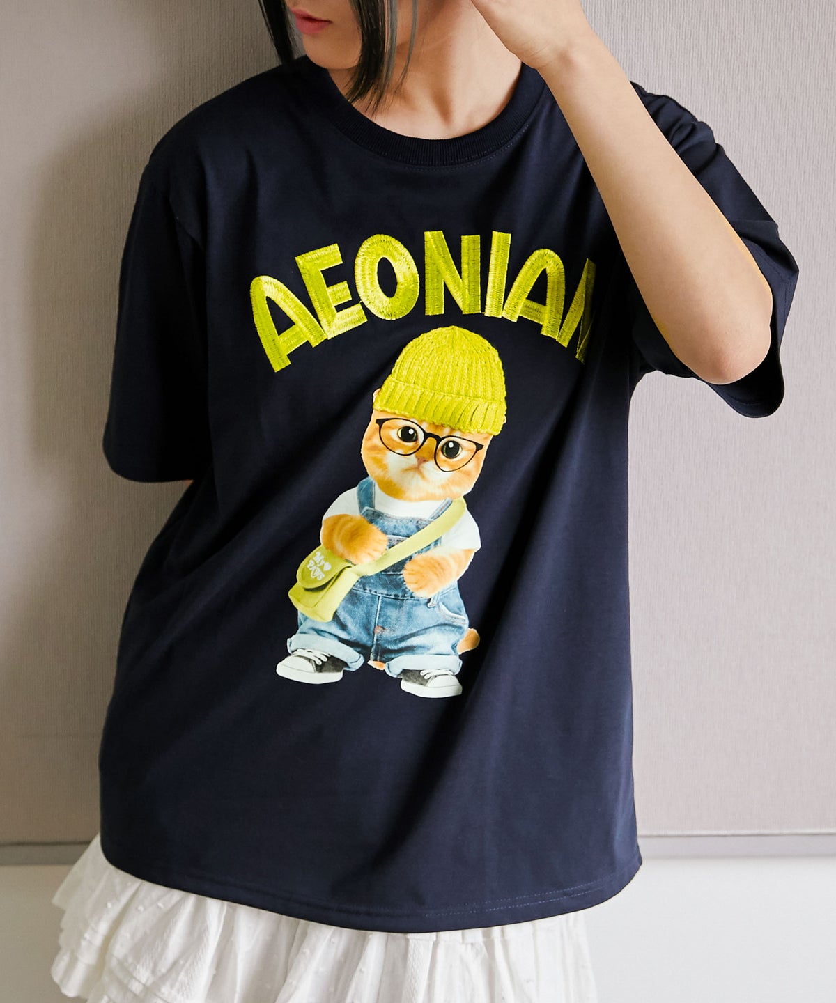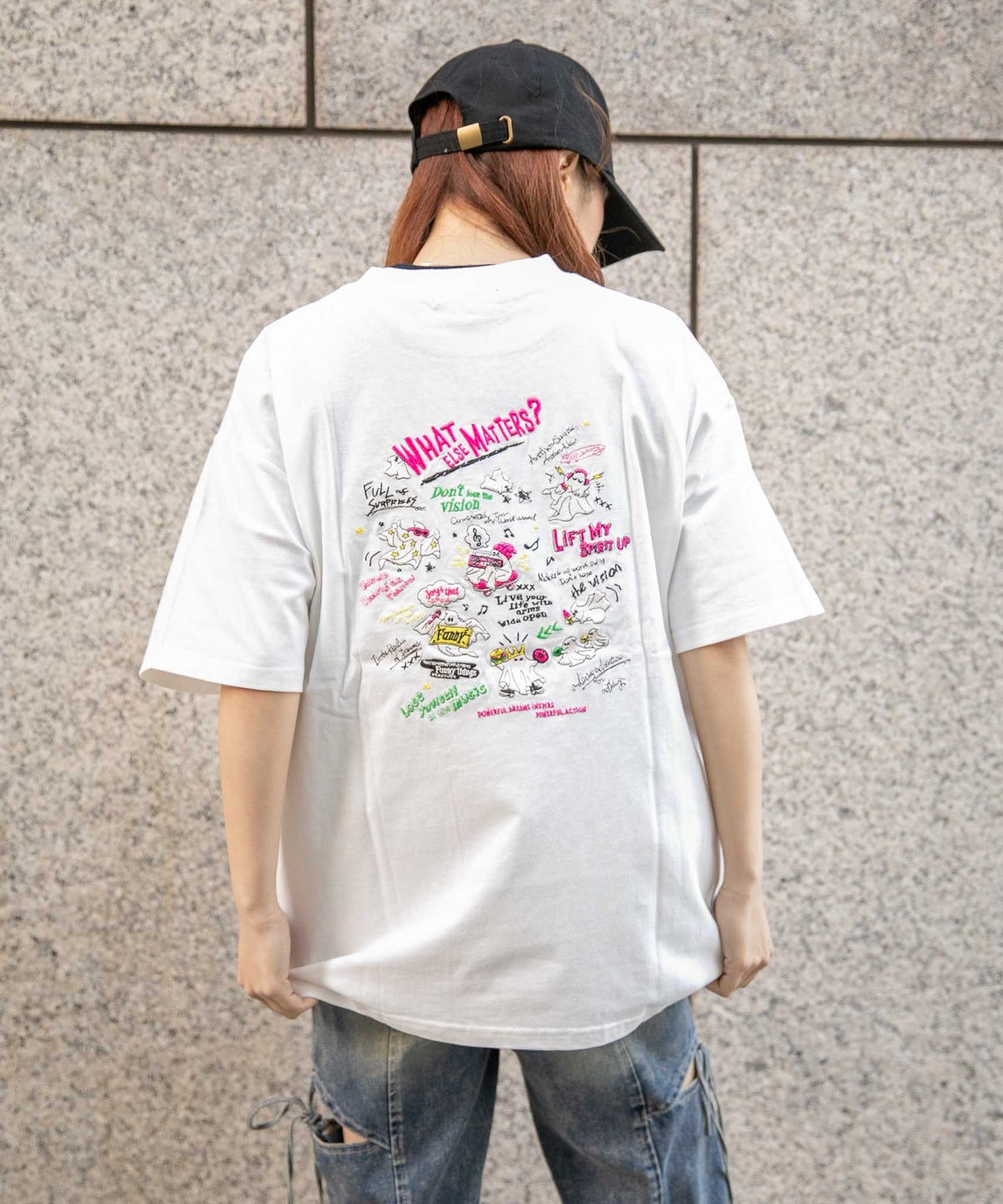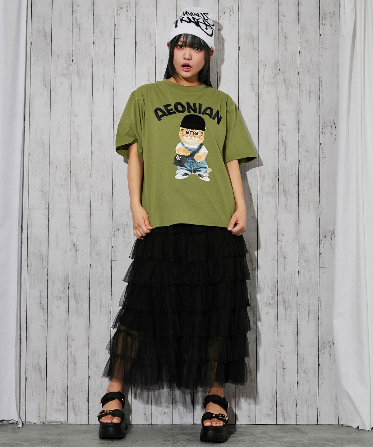 《刺繍ロゴ×帽子ネコ》オーバーサイズTシャツ/ストリート/春夏/全4色