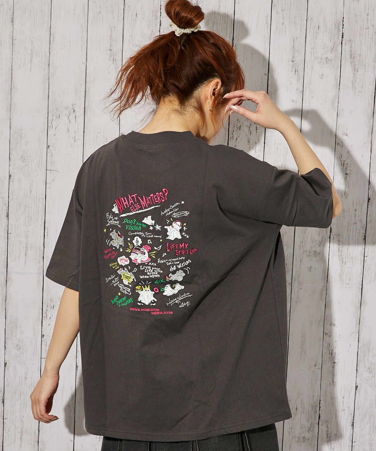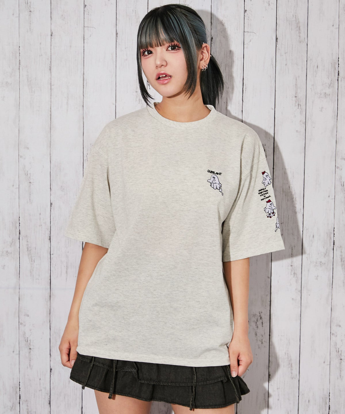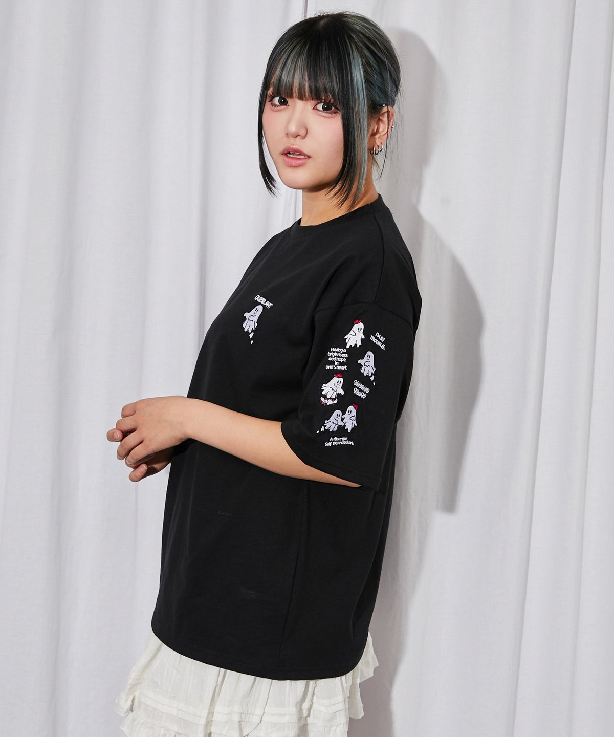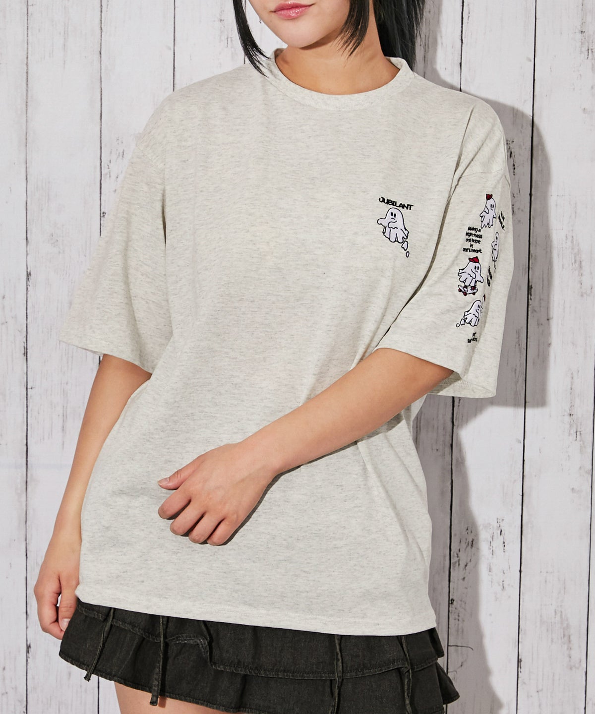 《おばけ刺繍》ビックTシャツ/ストリート/春夏/全3色