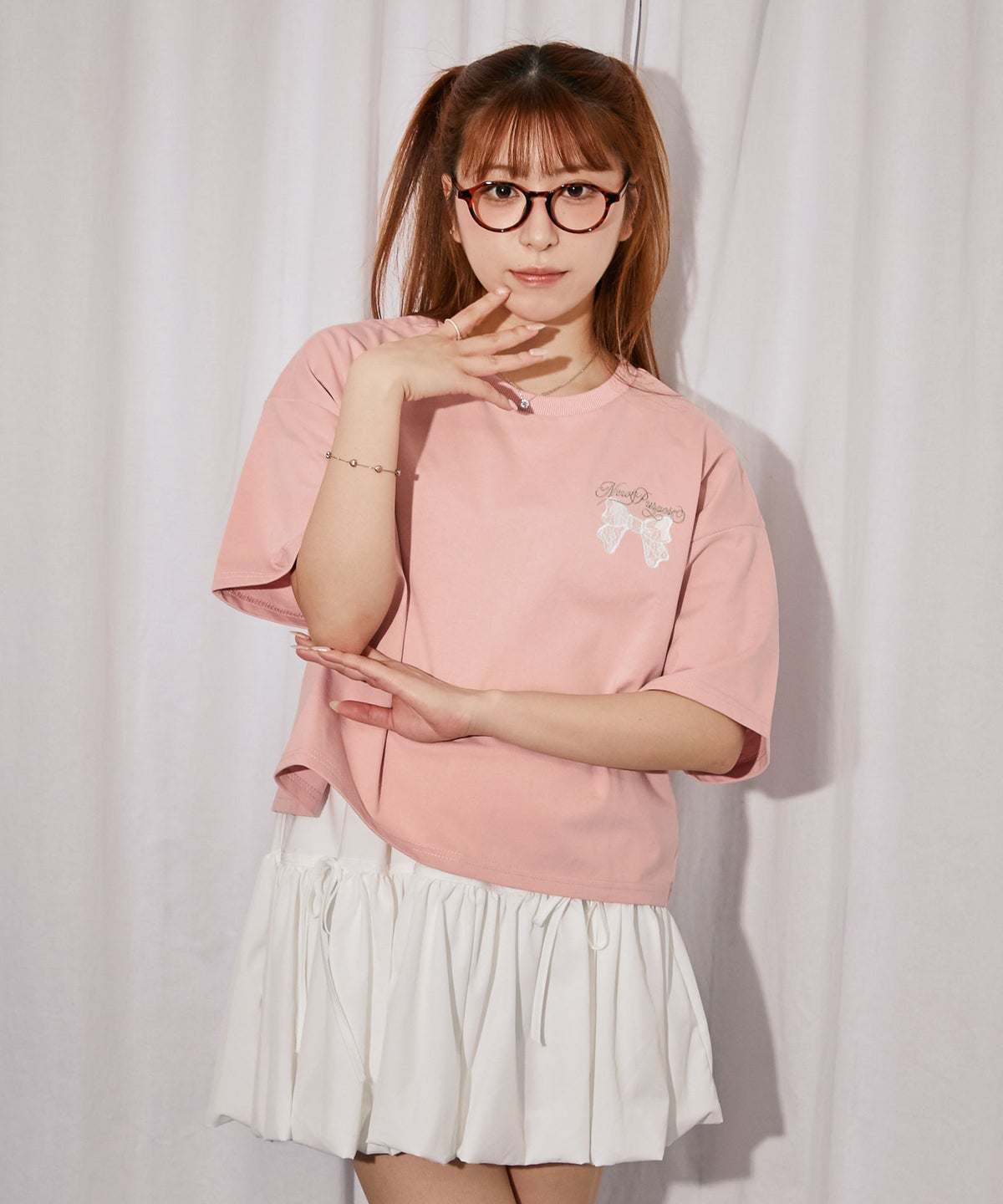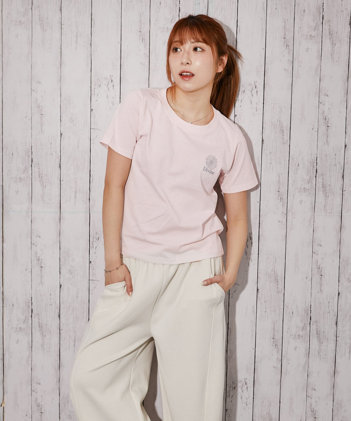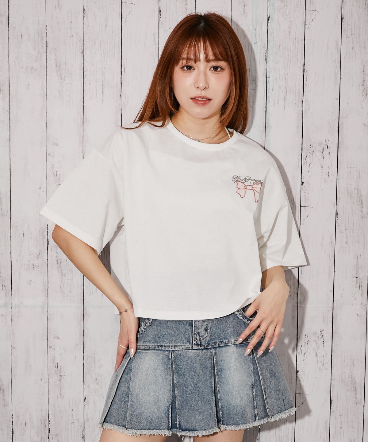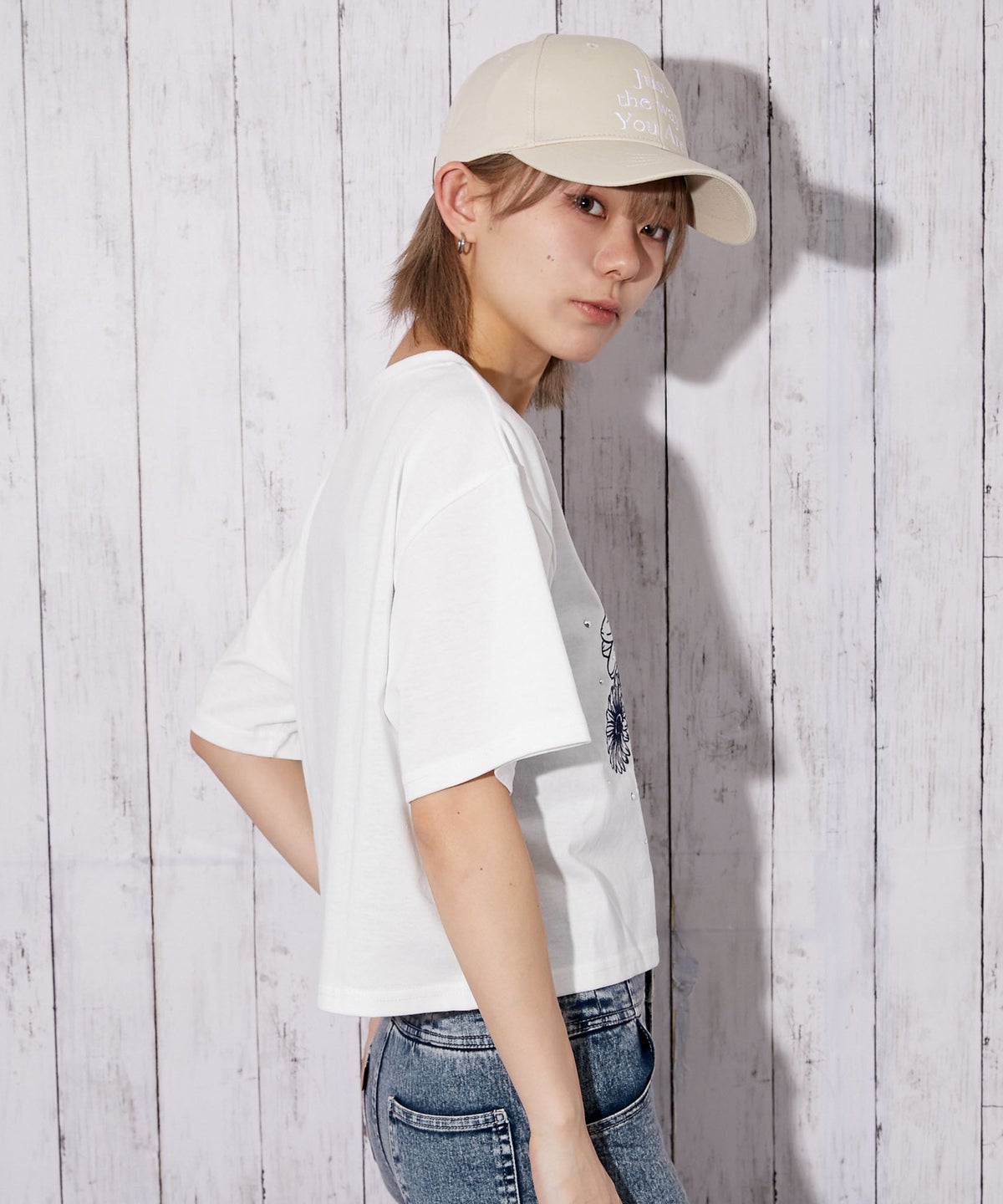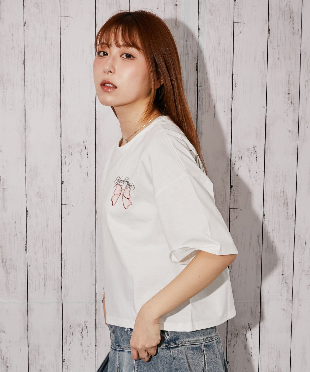 《花柄刺繍×ラインストーン》短丈Tシャツ/Y2K/春夏/全4色