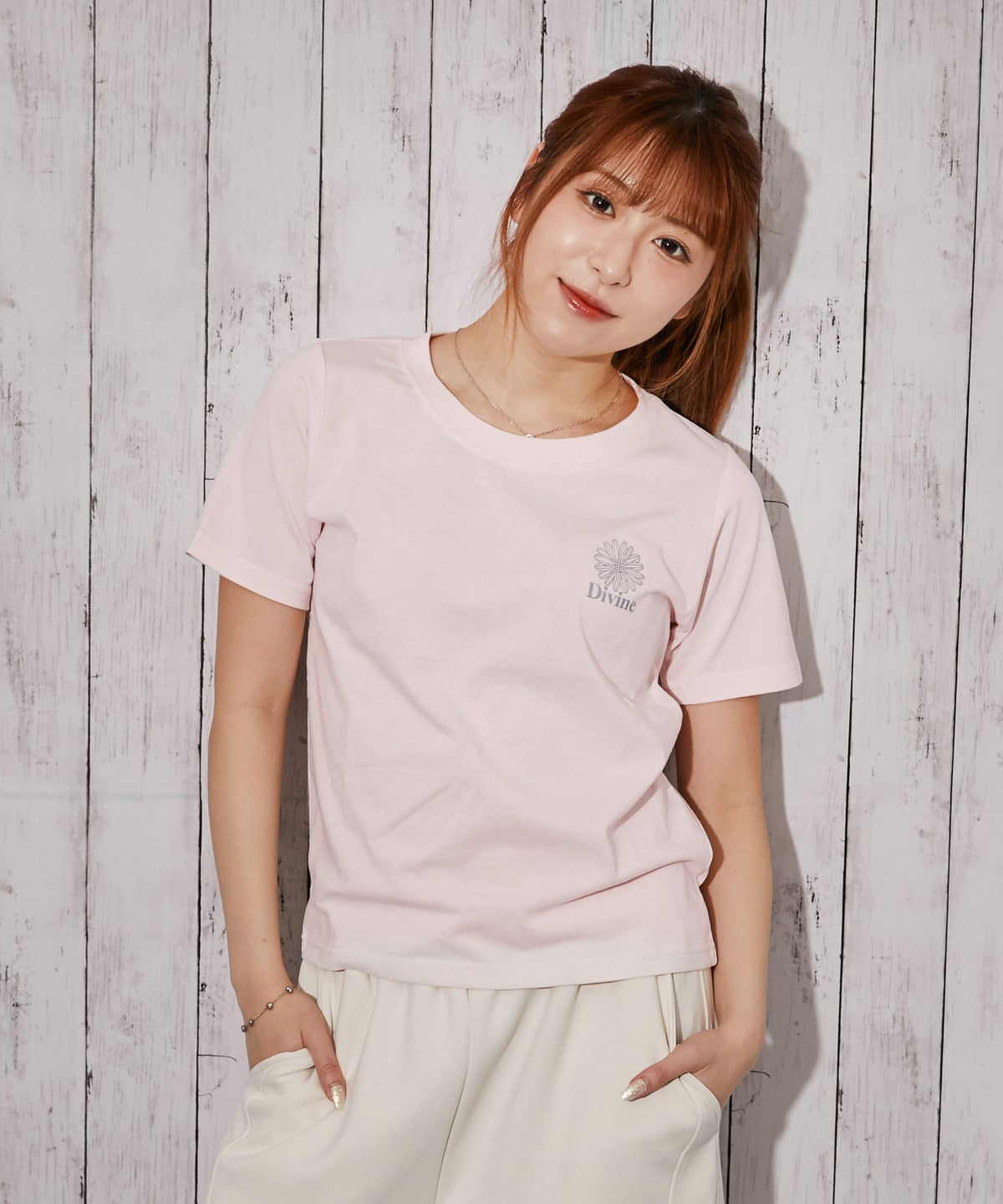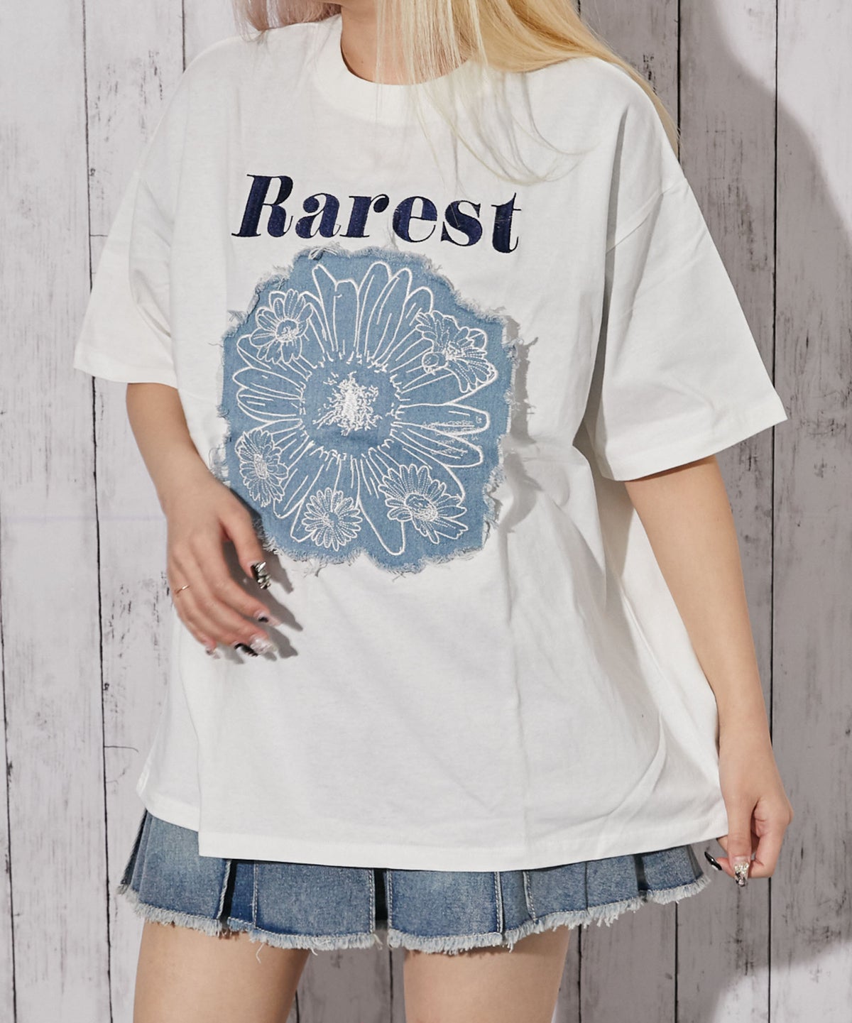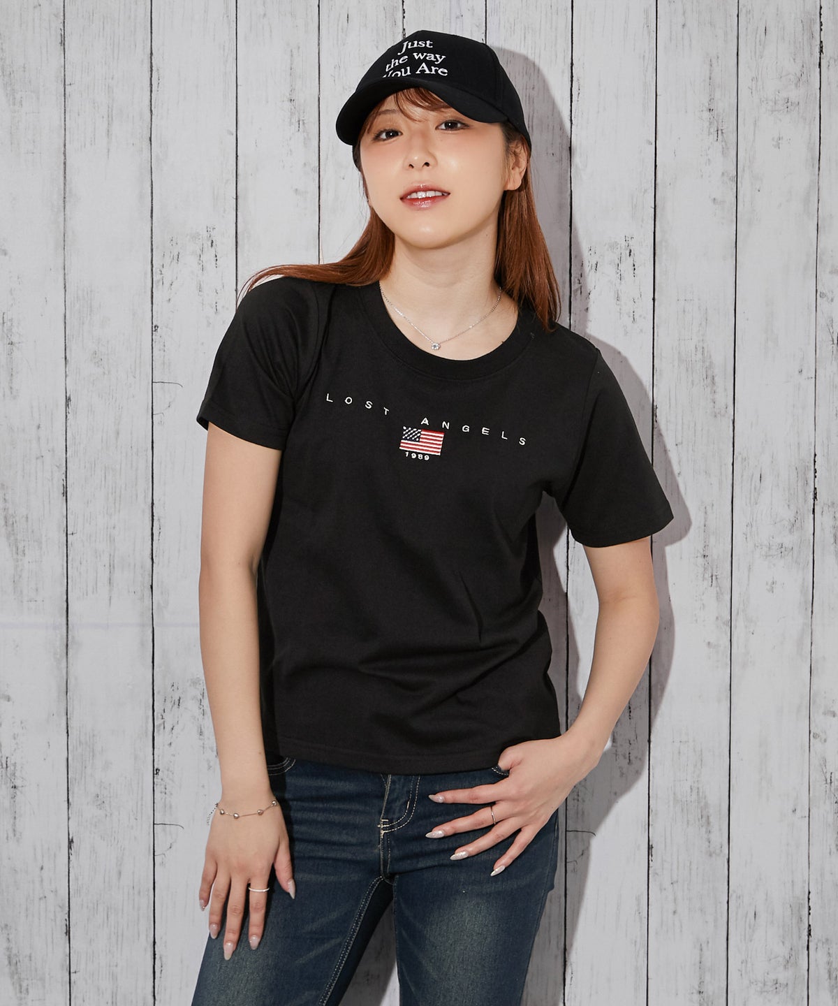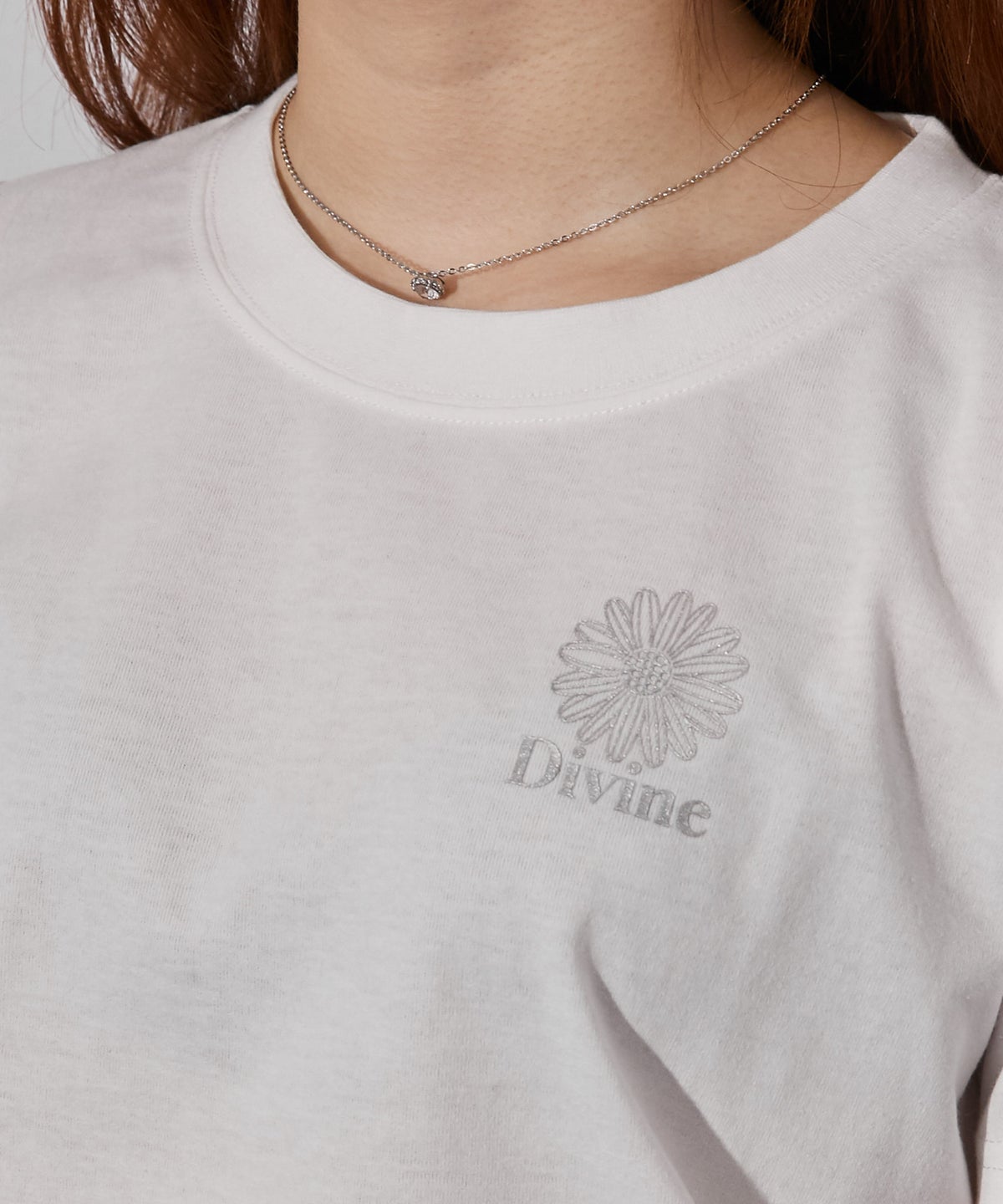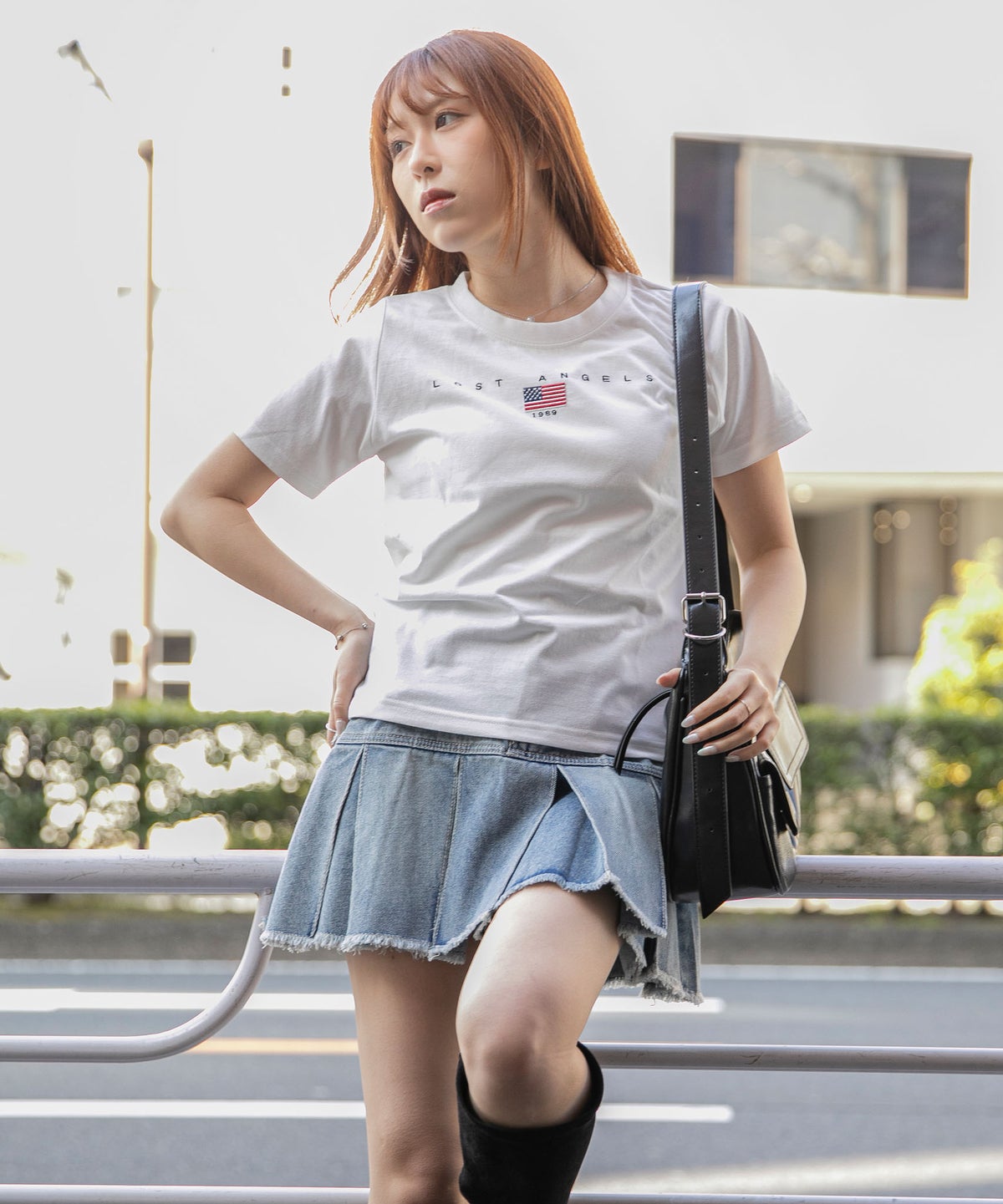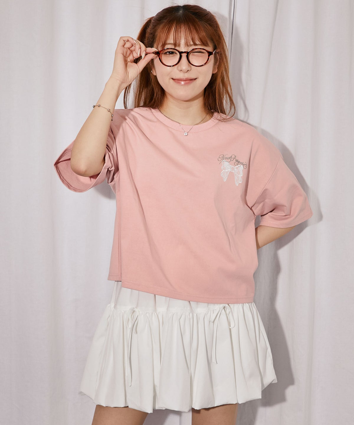 《花柄刺繍×ラインストーン》短丈Tシャツ/Y2K/春夏/全4色