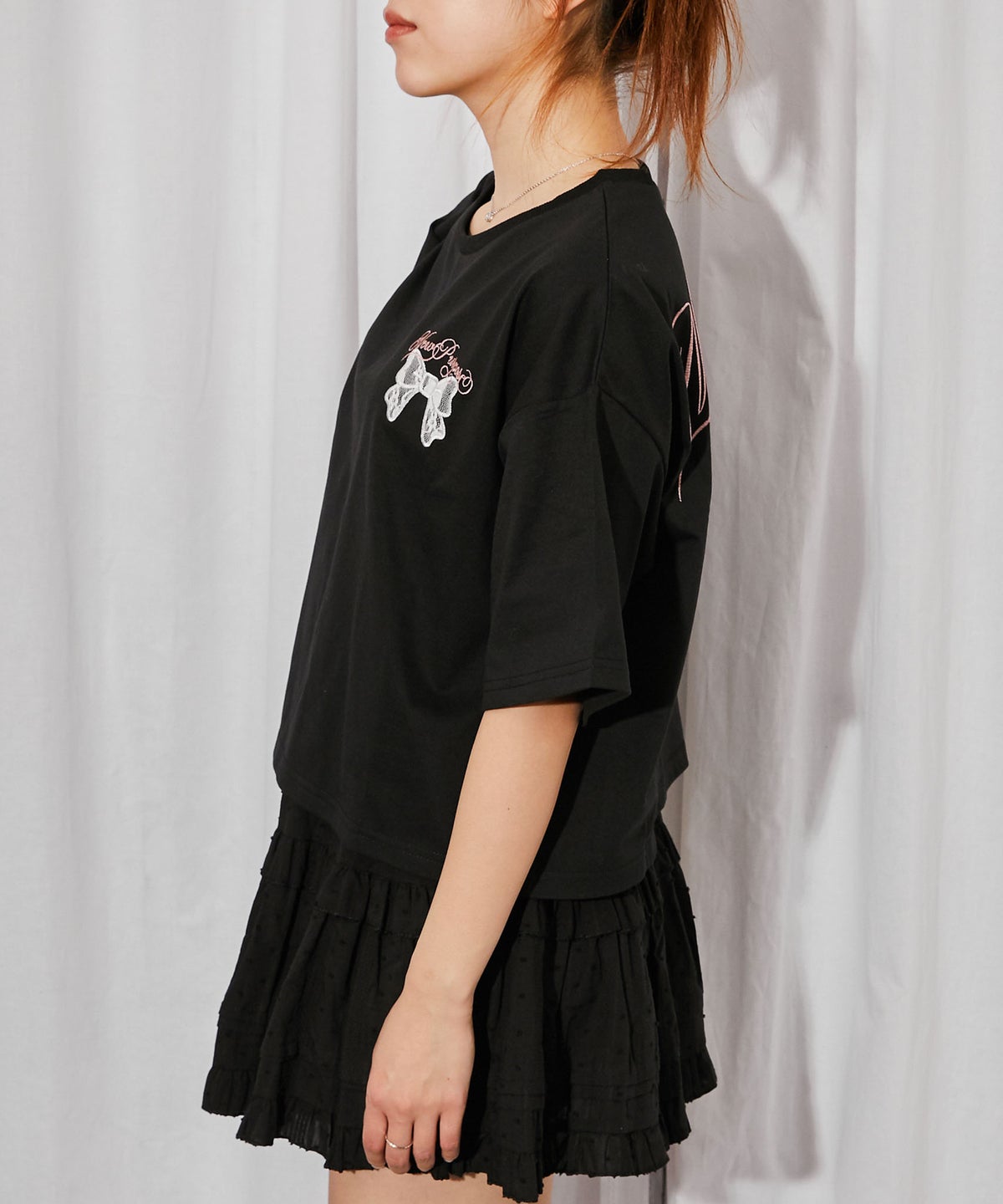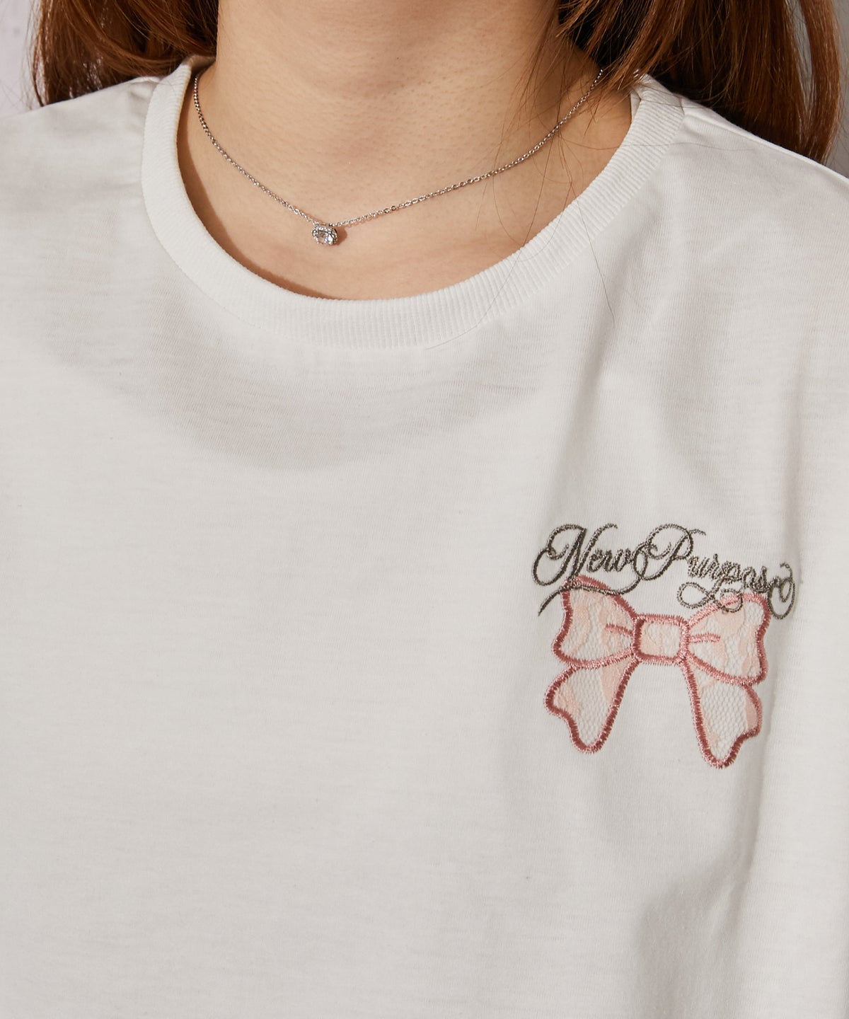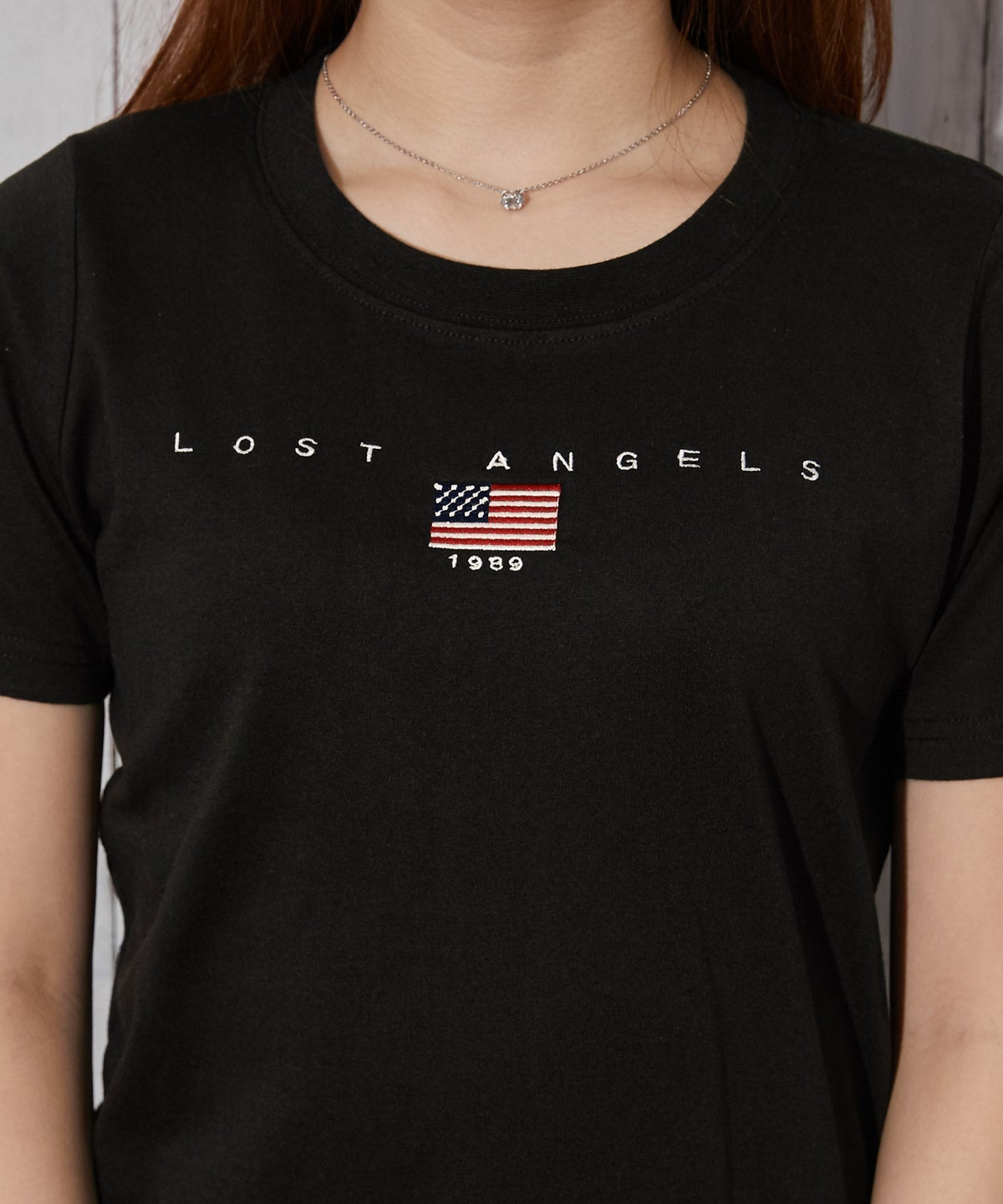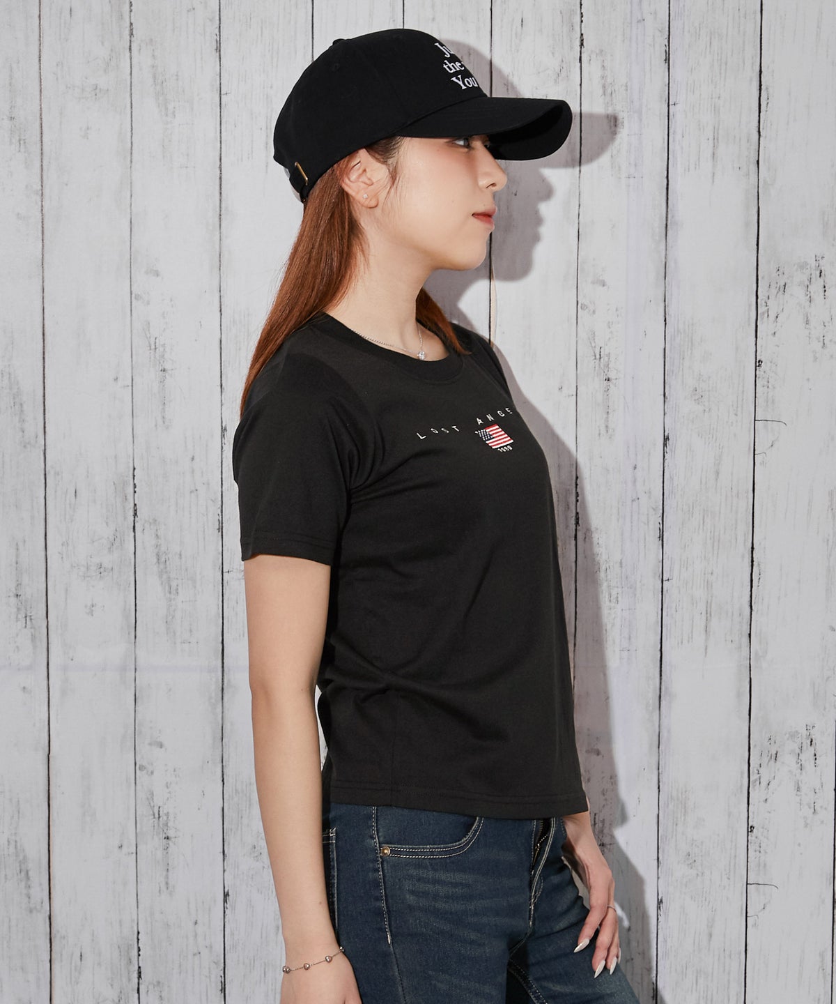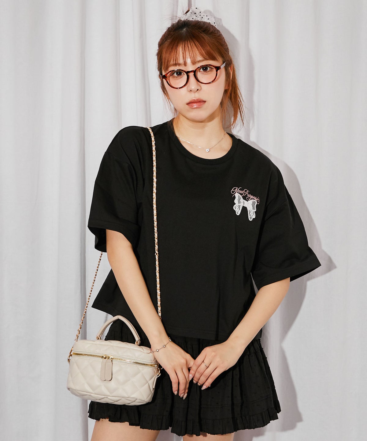 《花柄刺繍×ラインストーン》短丈Tシャツ/Y2K/春夏/全4色