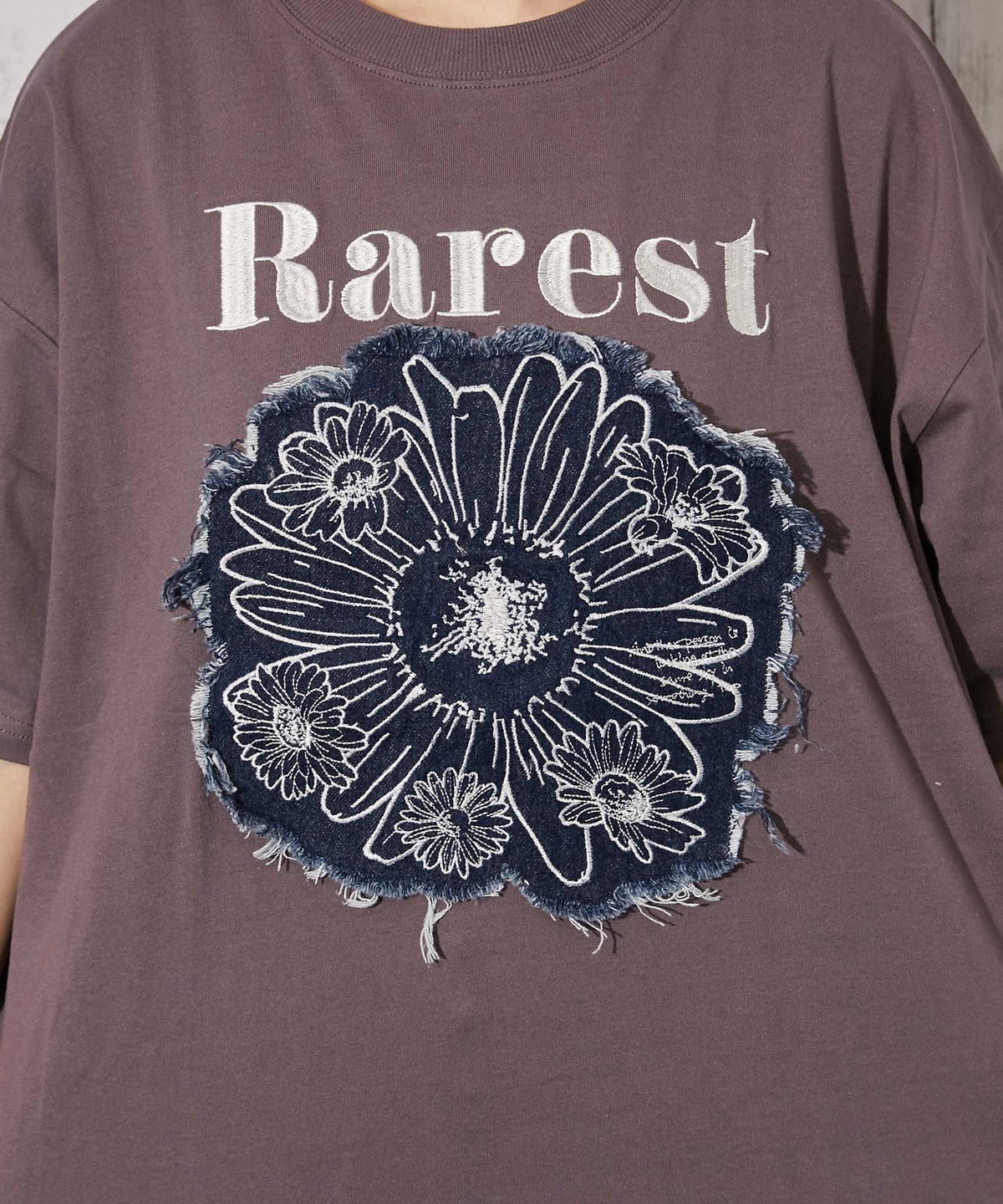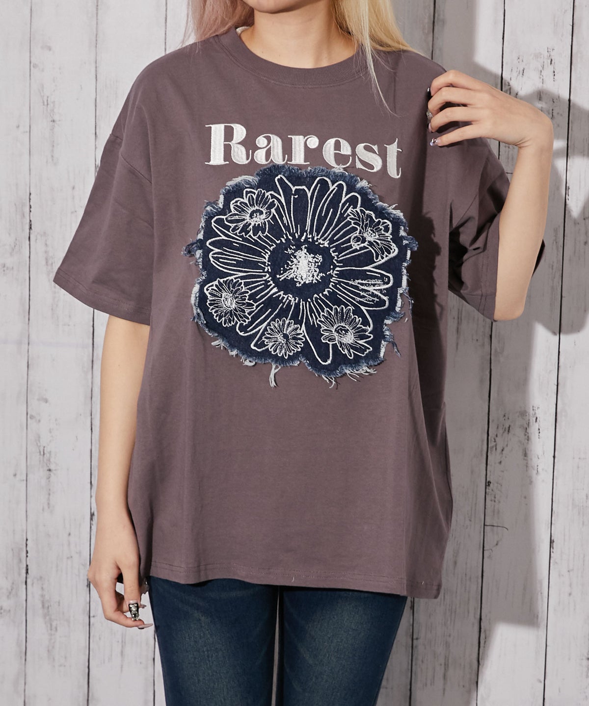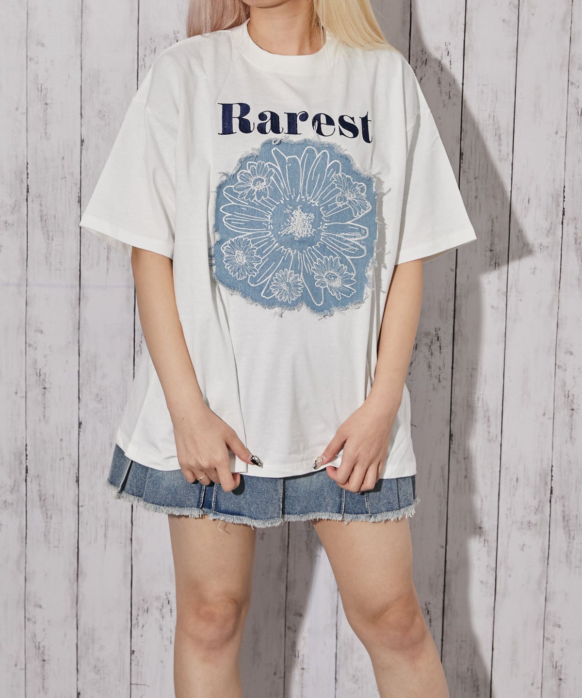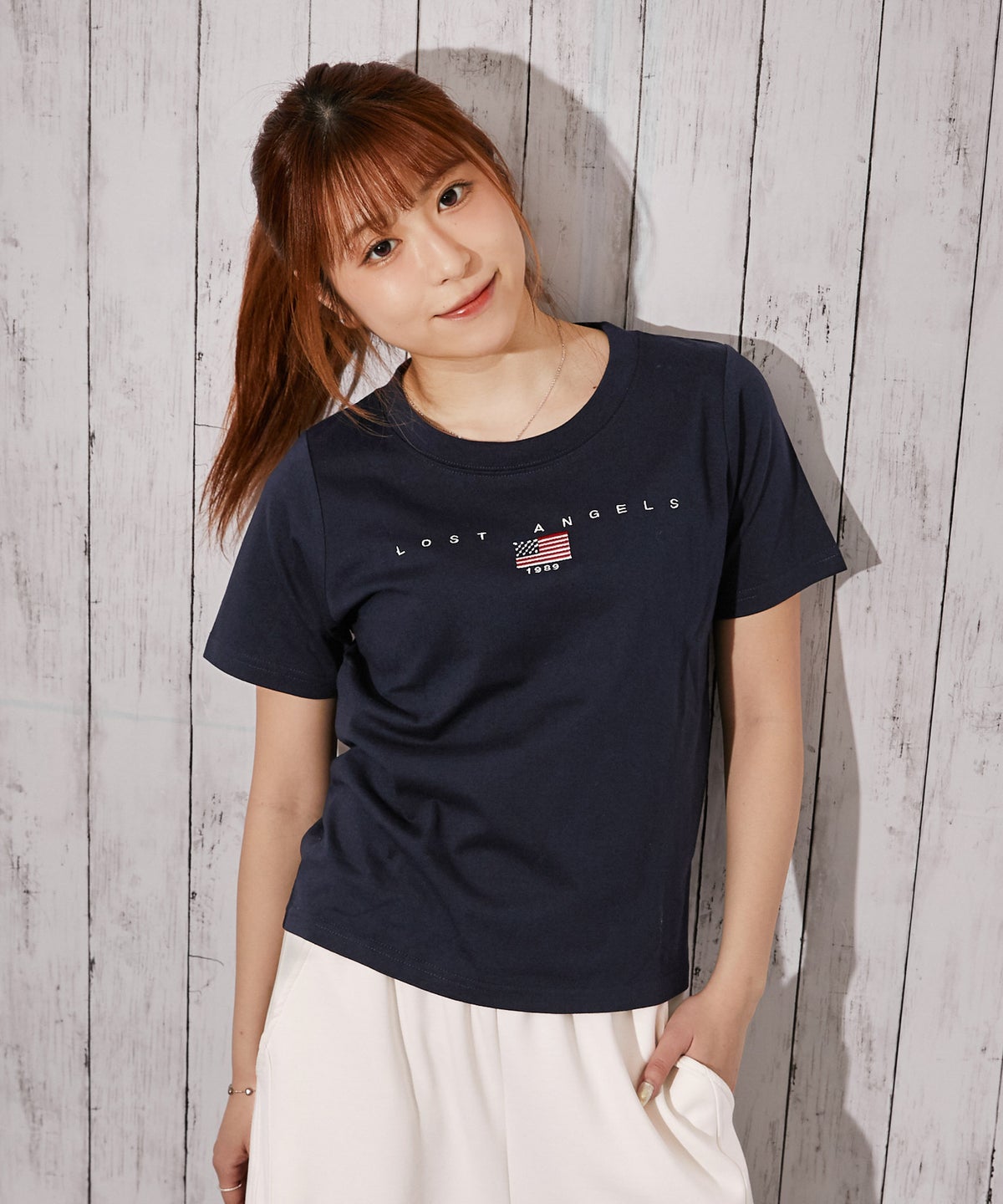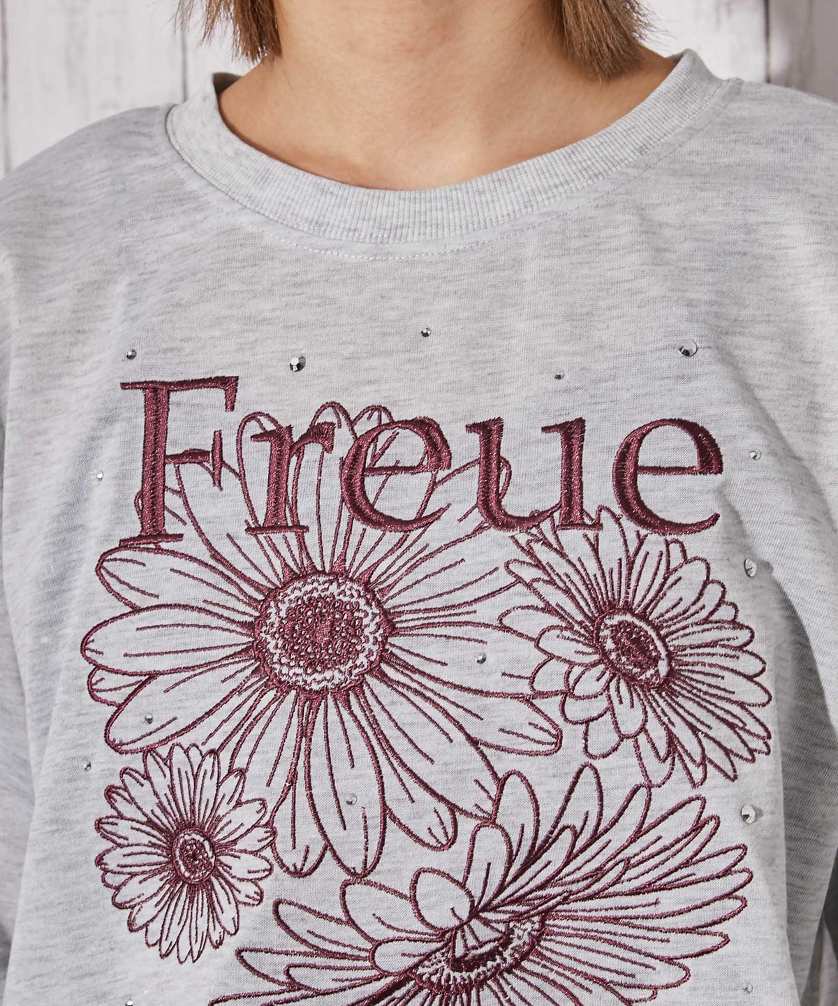 《花柄刺繍×ラインストーン》短丈Tシャツ/Y2K/春夏/全4色