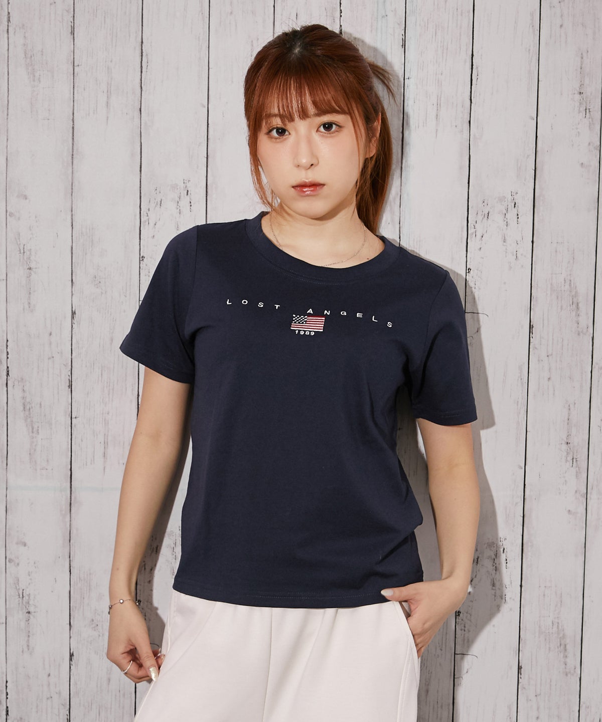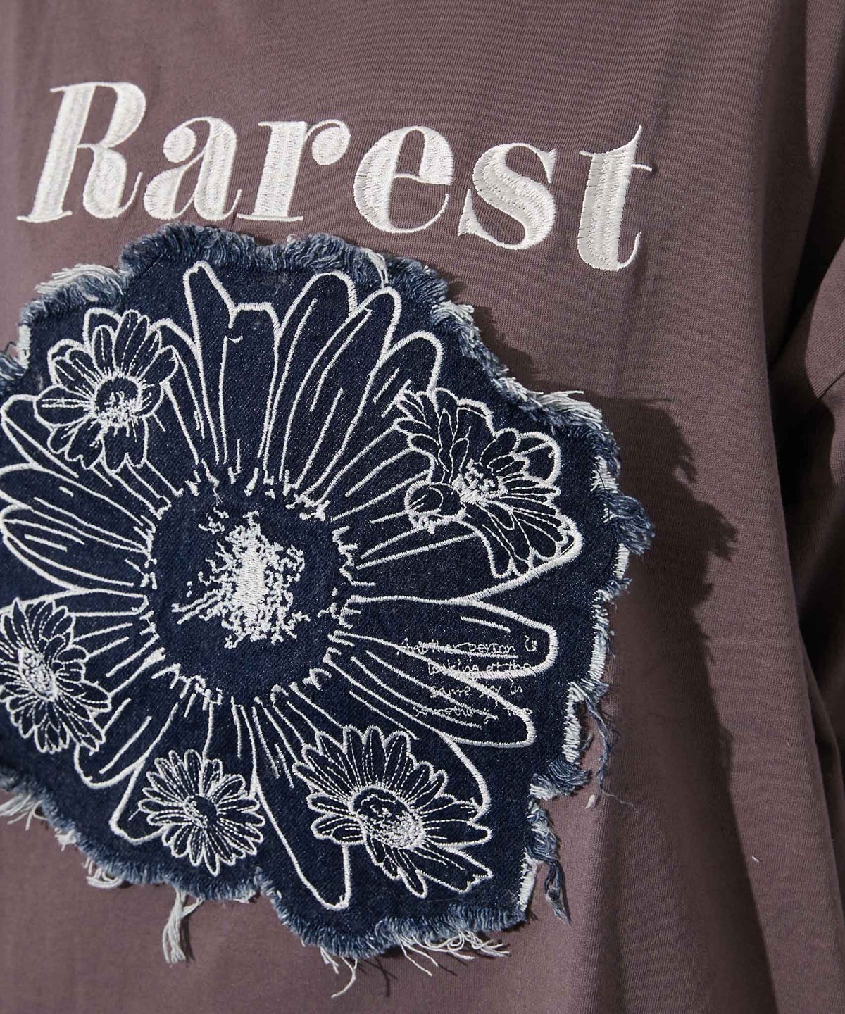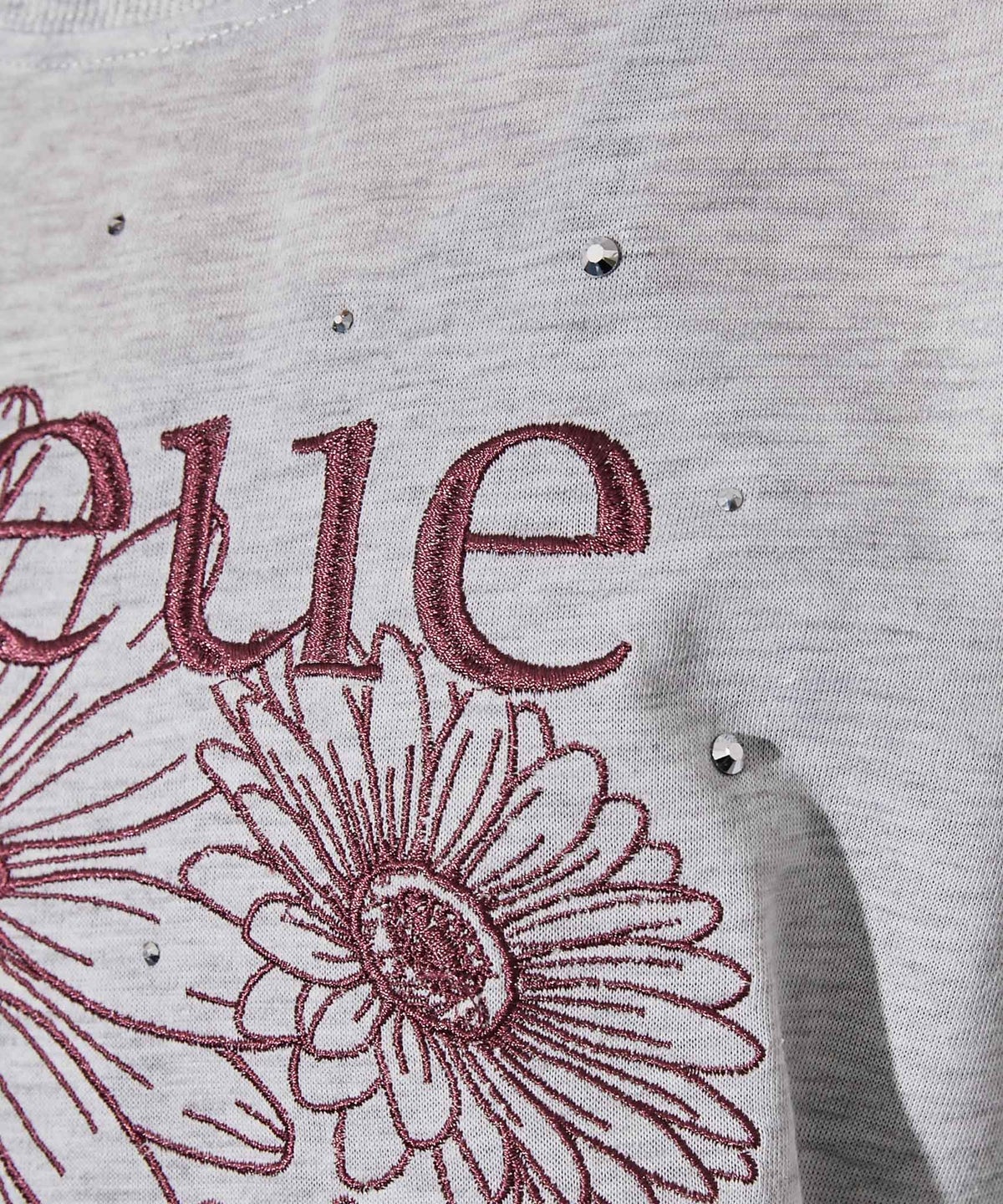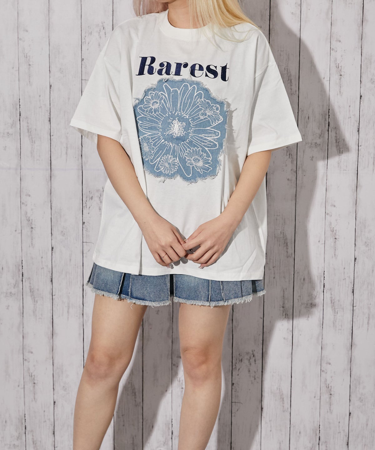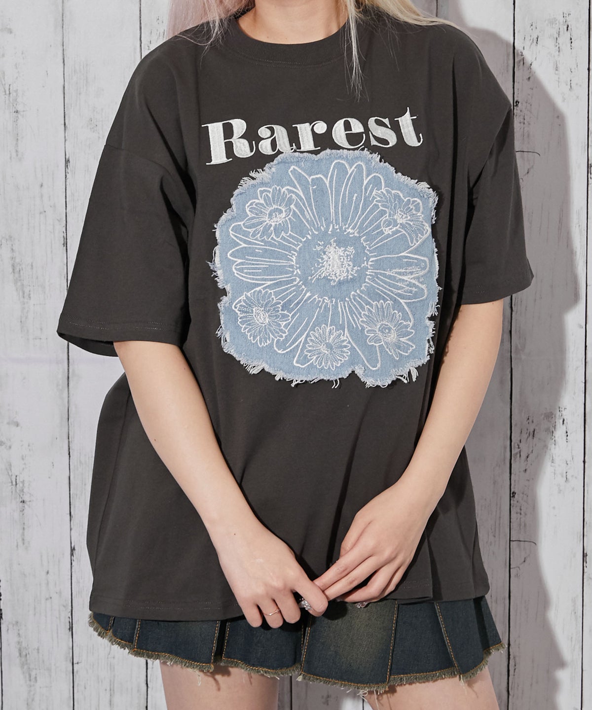 《花柄刺繍×ラインストーン》短丈Tシャツ/Y2K/春夏/全4色